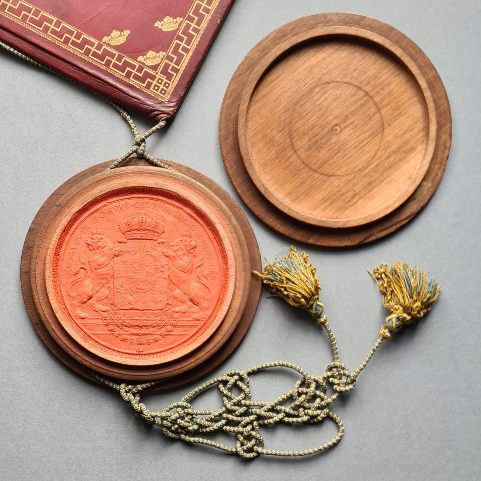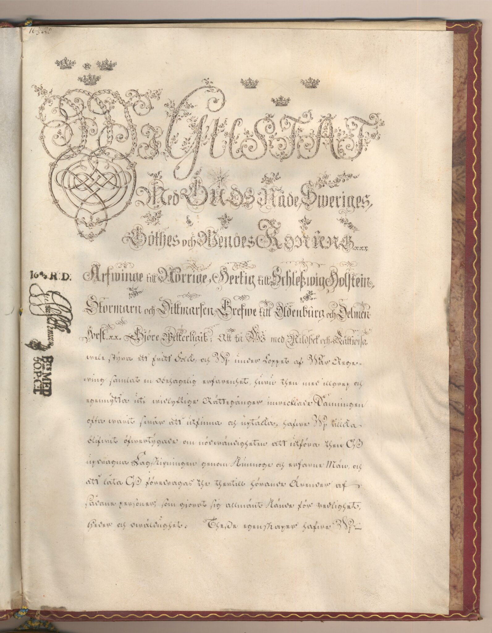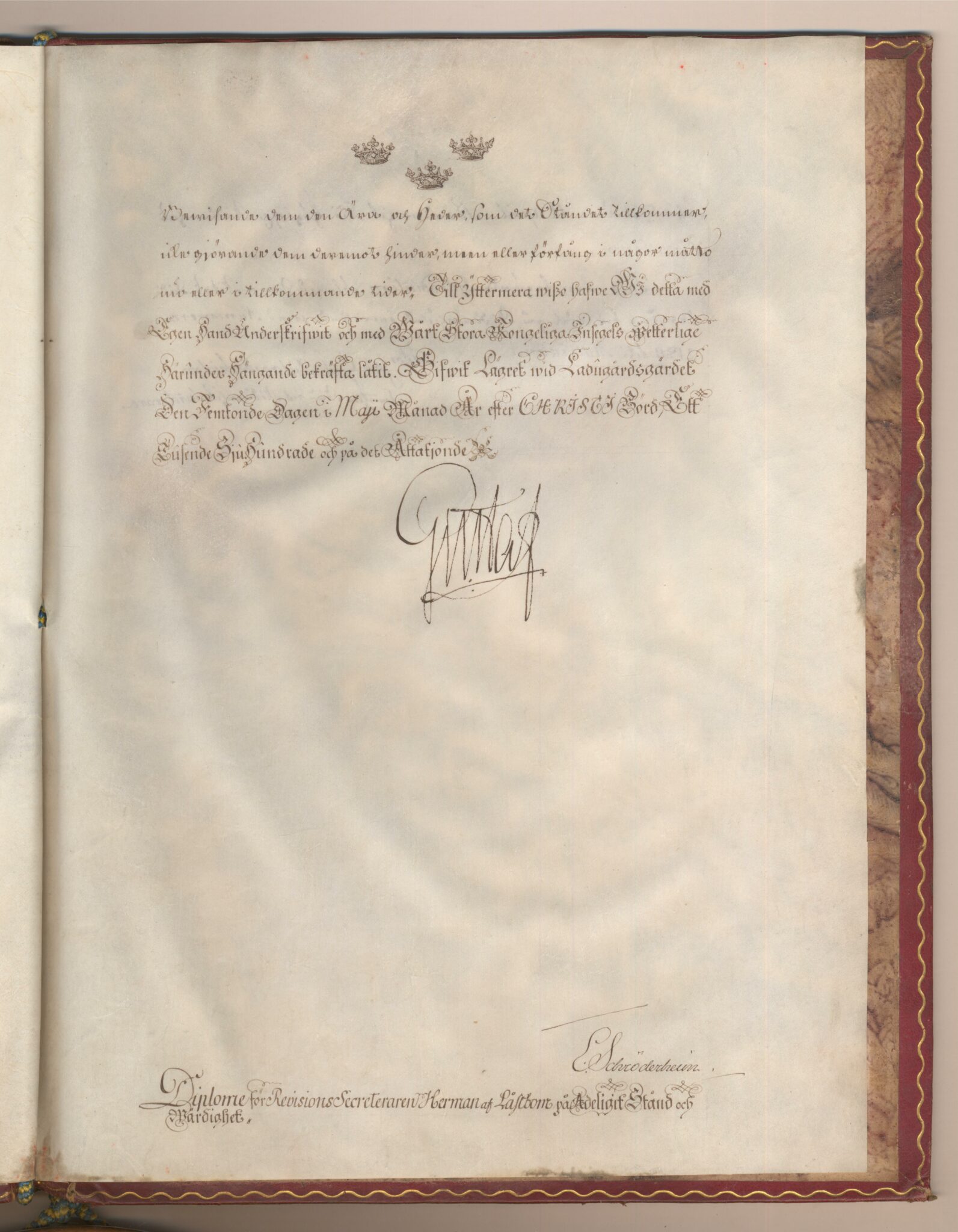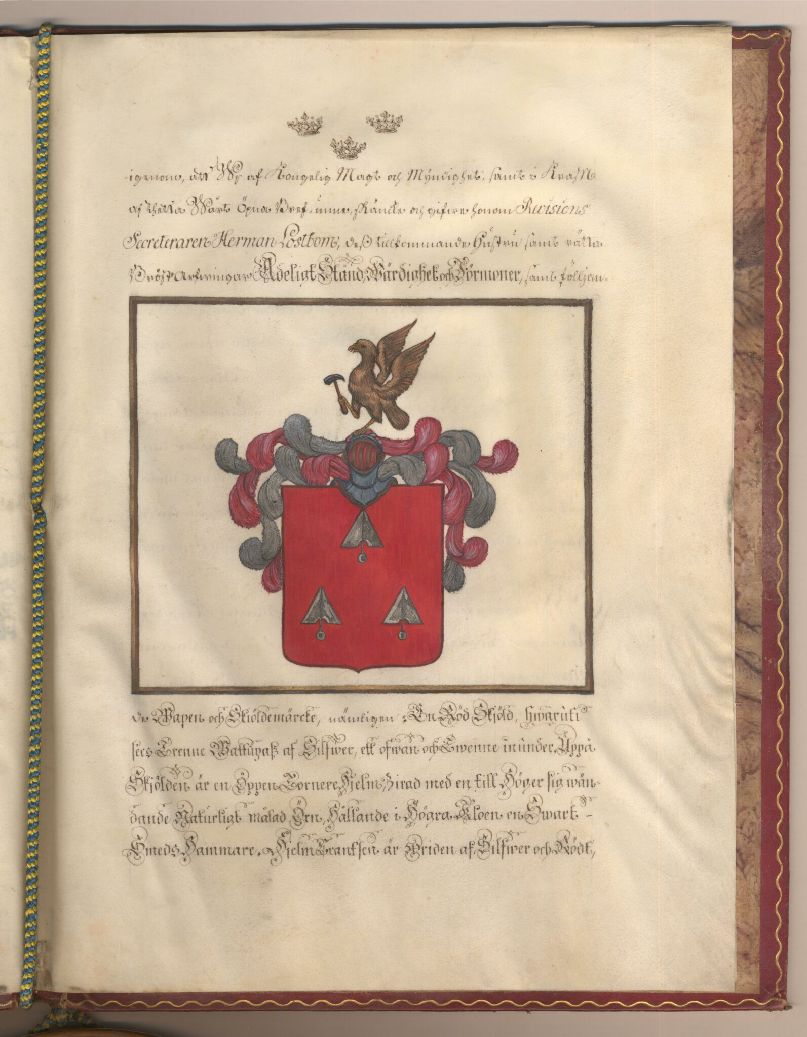 Sköldebrevet i original för utdöda adliga ätten af Låstbom, nr 2129 B.