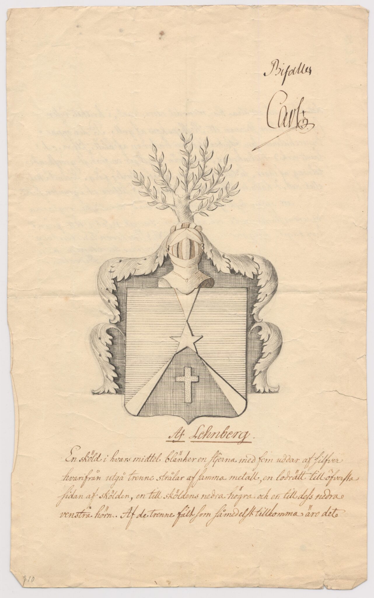 Approberad vapenritning för utdöda adliga ätten af Lehnberg, nr 2210.