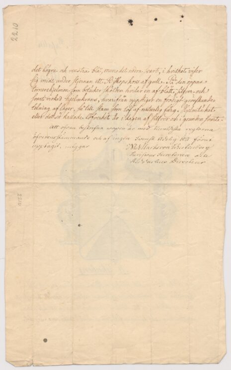Utförd: Riddarhusdirektör Nils Wilhelm Marcks von Würtemberg.