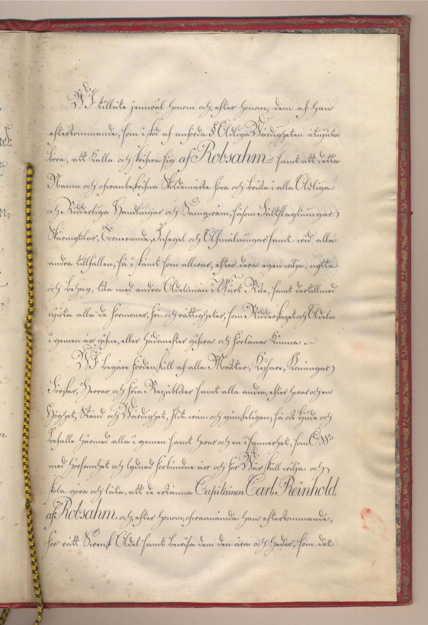 Sköldebrevet i original för adliga ätten af Robsahm, nr 2281.