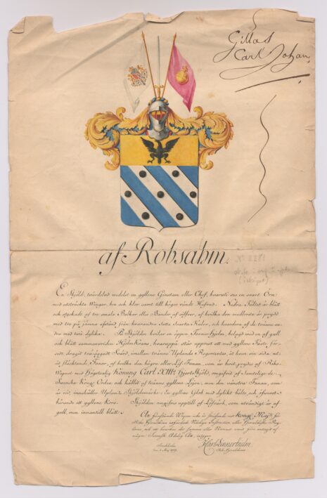 Approberad vapenritning för utdöda adliga ätten af Robsahm, nr 2281.