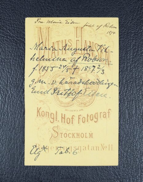 Robson, MARIA Augusta Vilhelmina, gift Eisen. Född 1855-05-24. Död 1897-03-02.