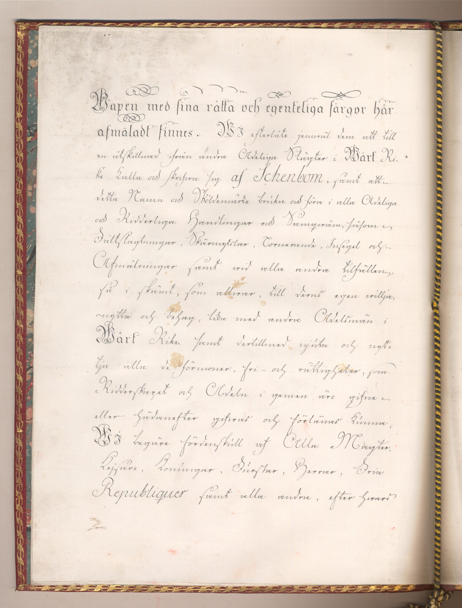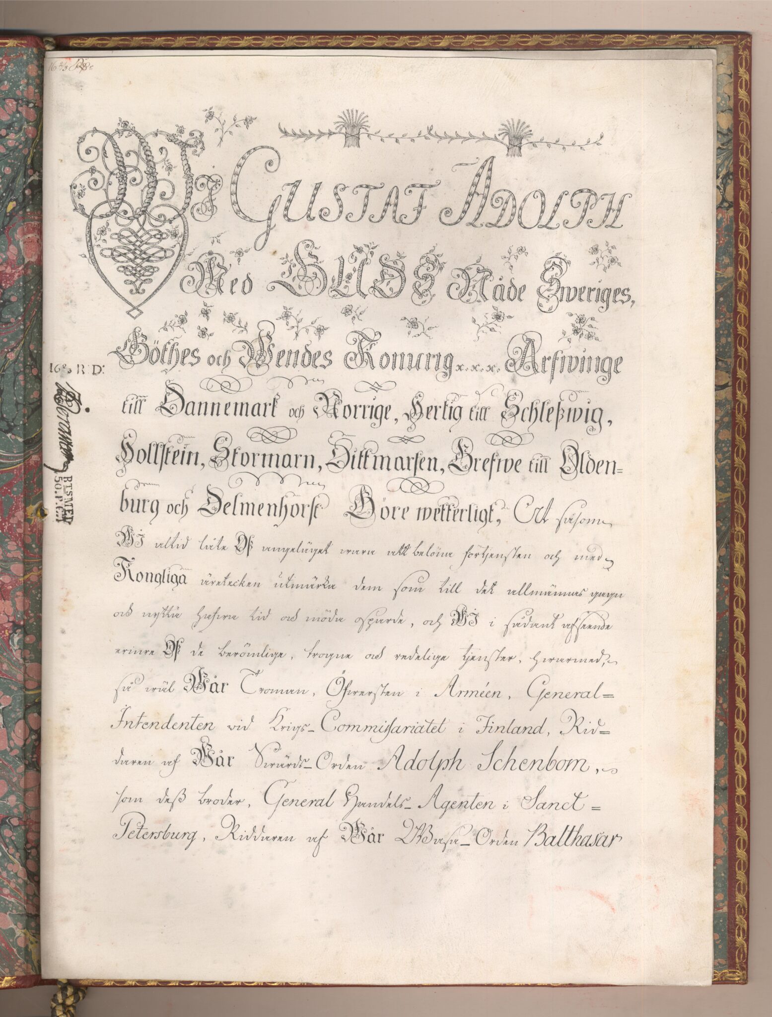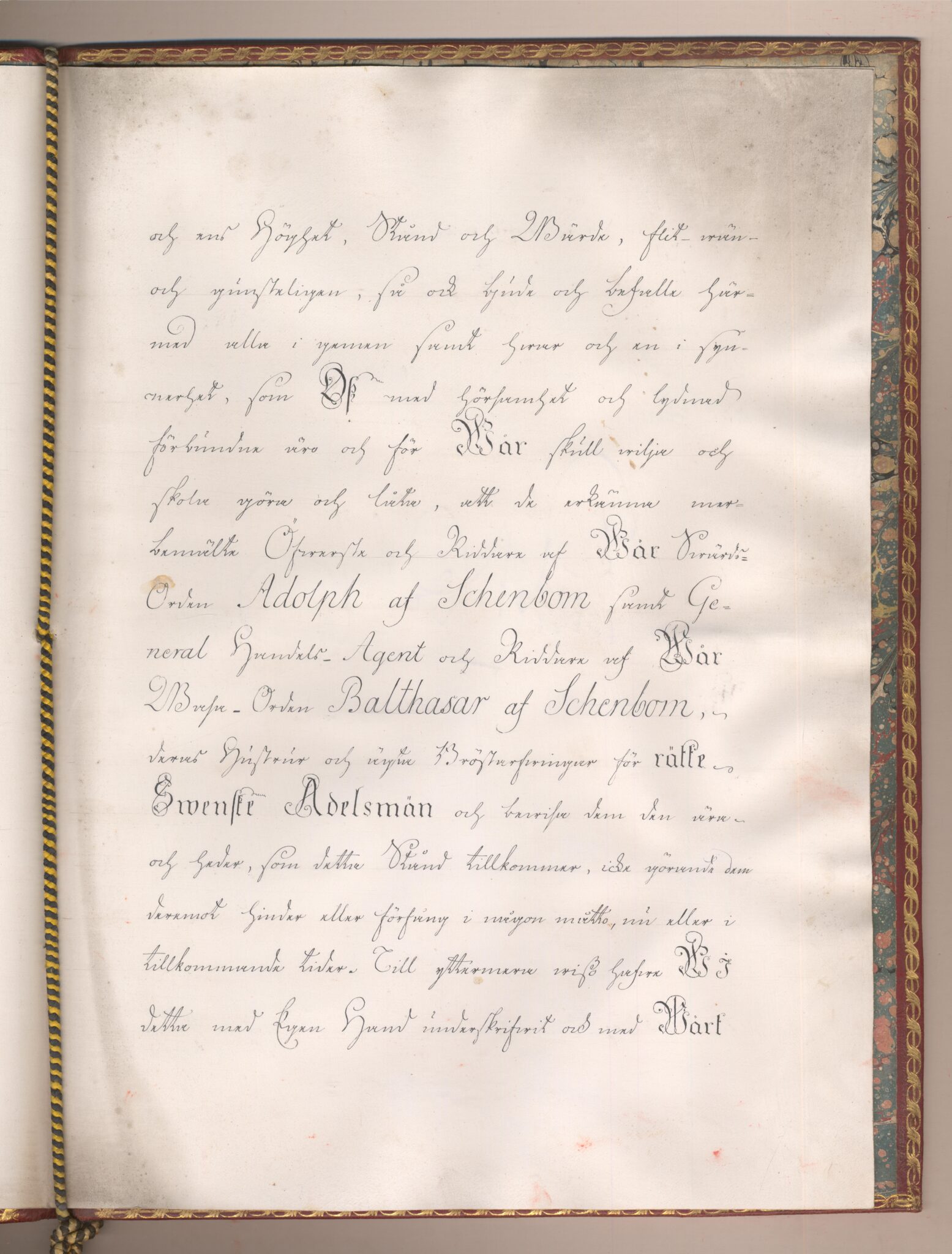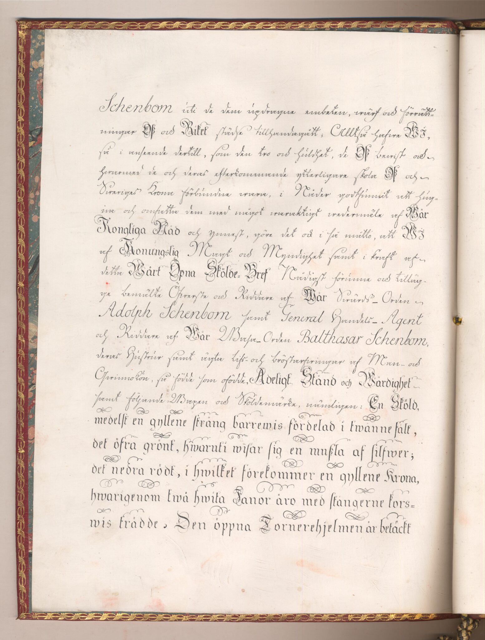 Sköldebrevet i original för utdöda adliga ätten af Schenbom, nr 2173.