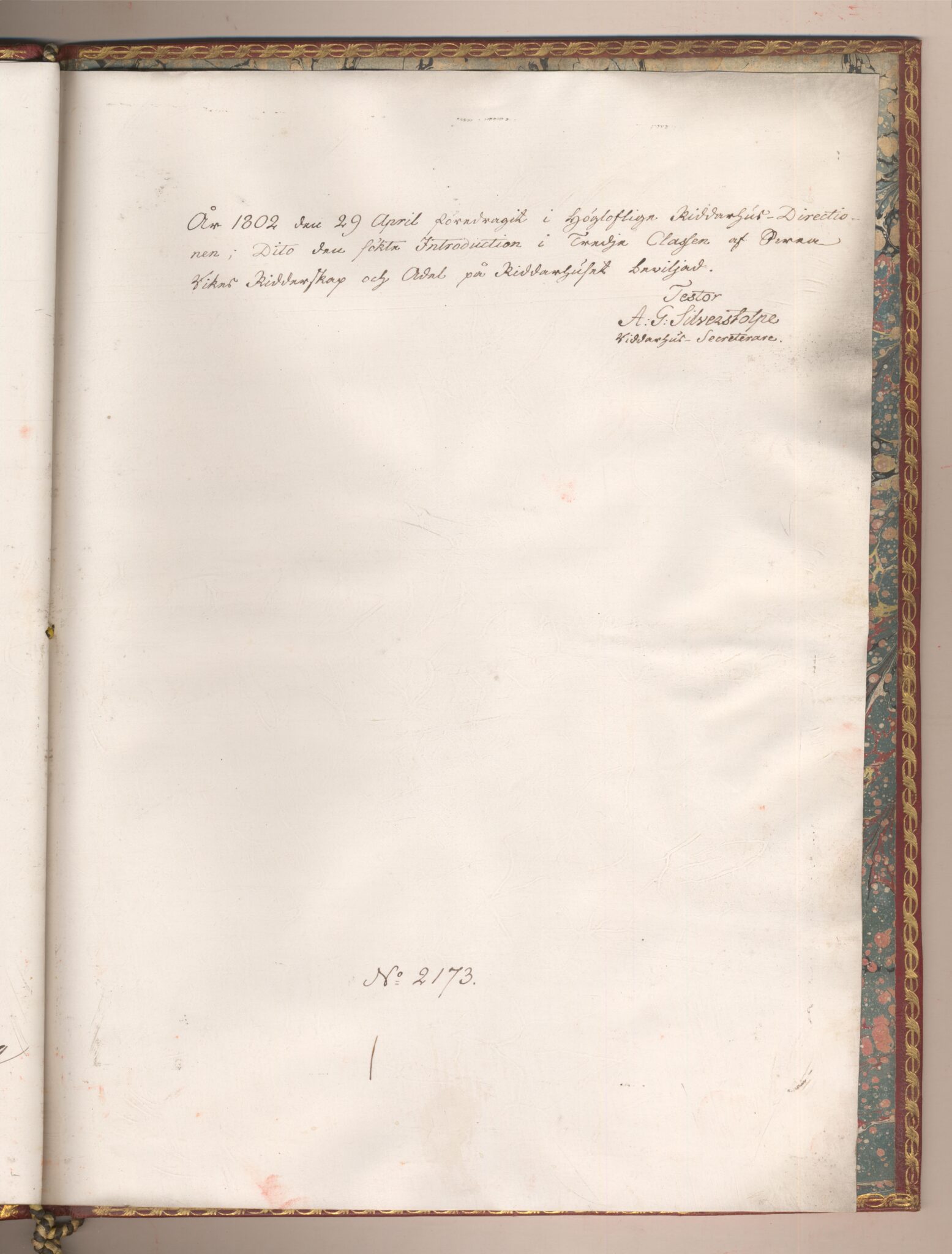 RHDP 1890-12-02, sid 175. Donation 1890-12-02 av NN.