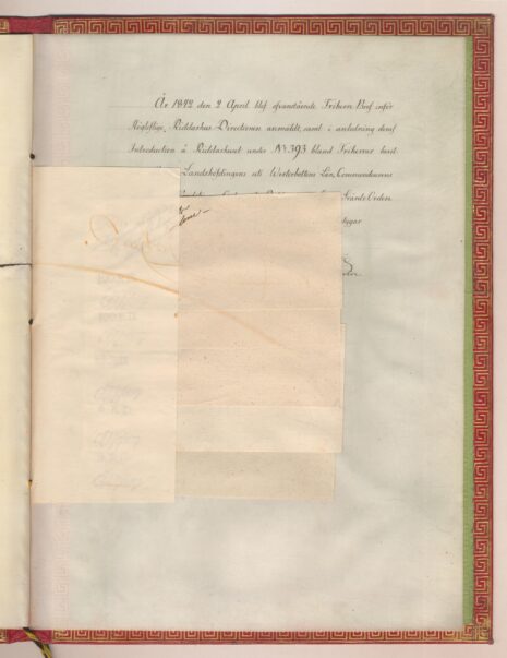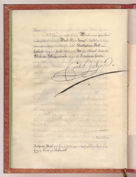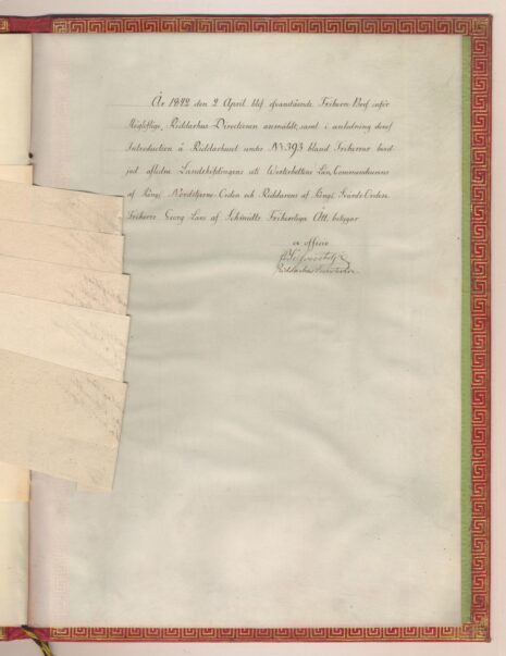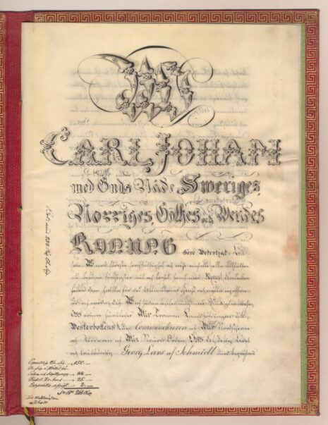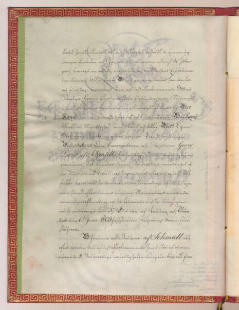 Friherrebrevet i original för friherrliga ätten af Schmidt, nr 393.