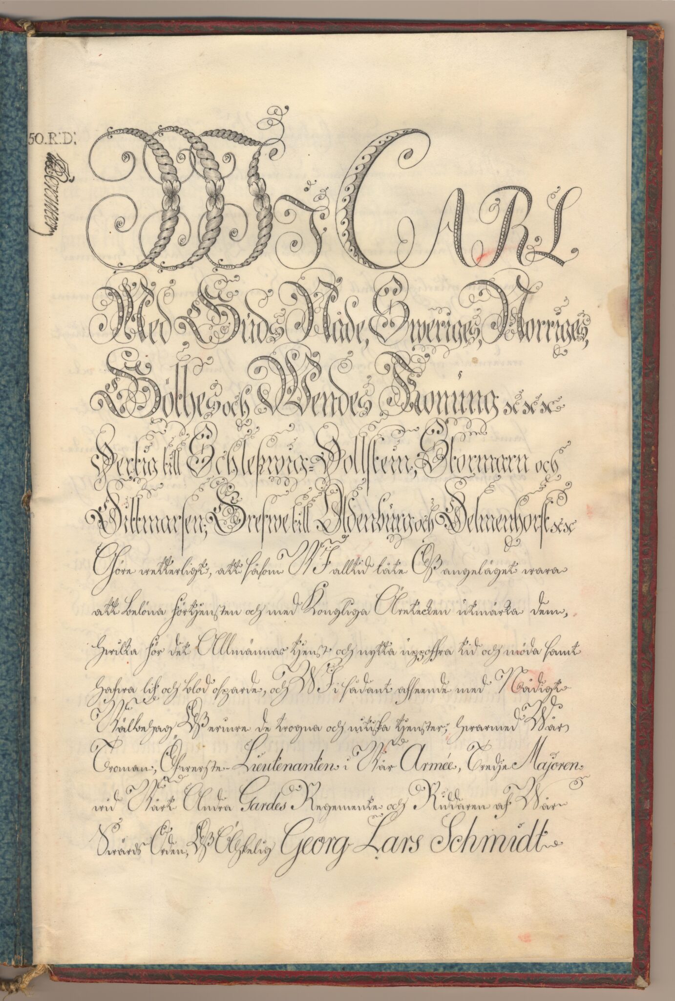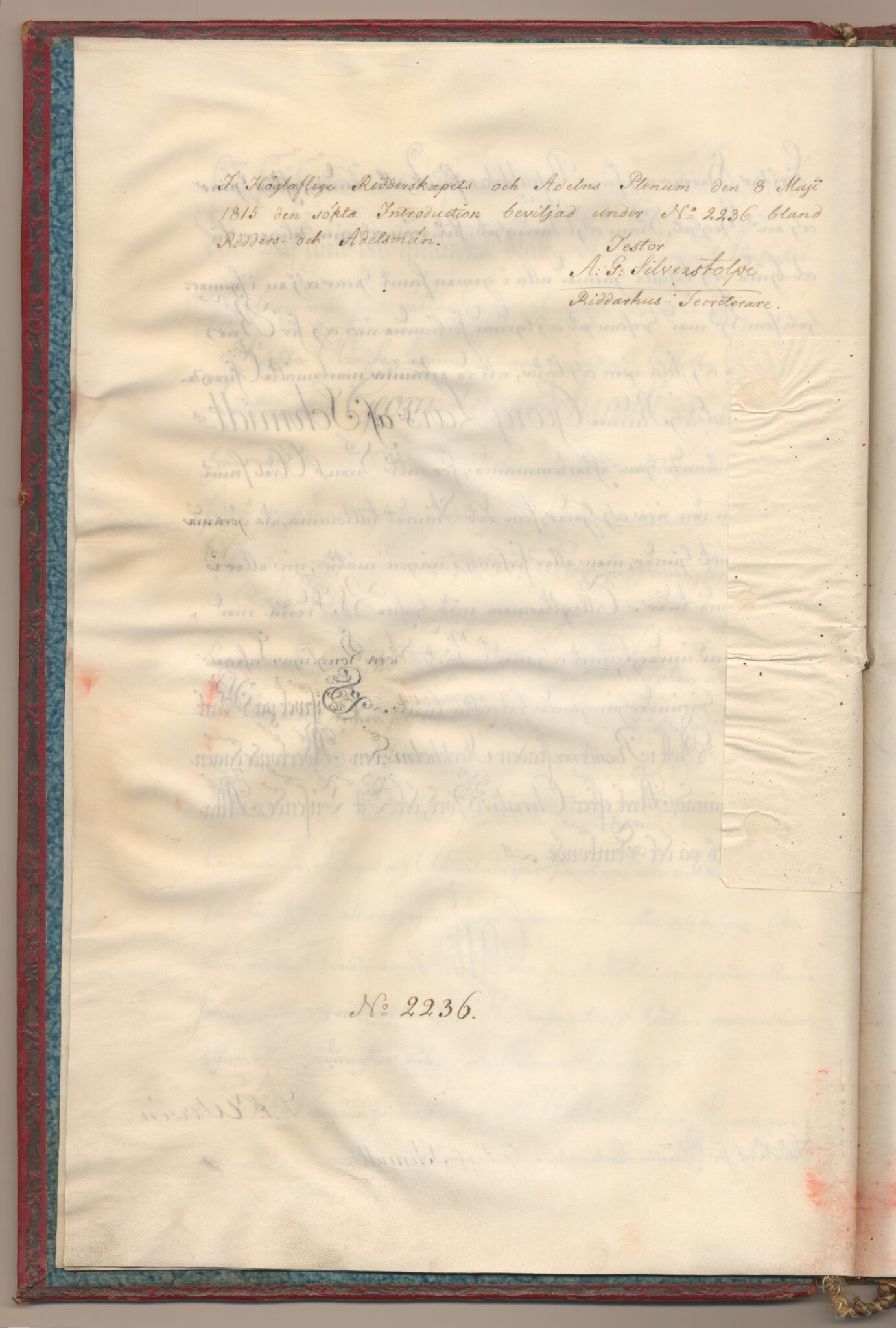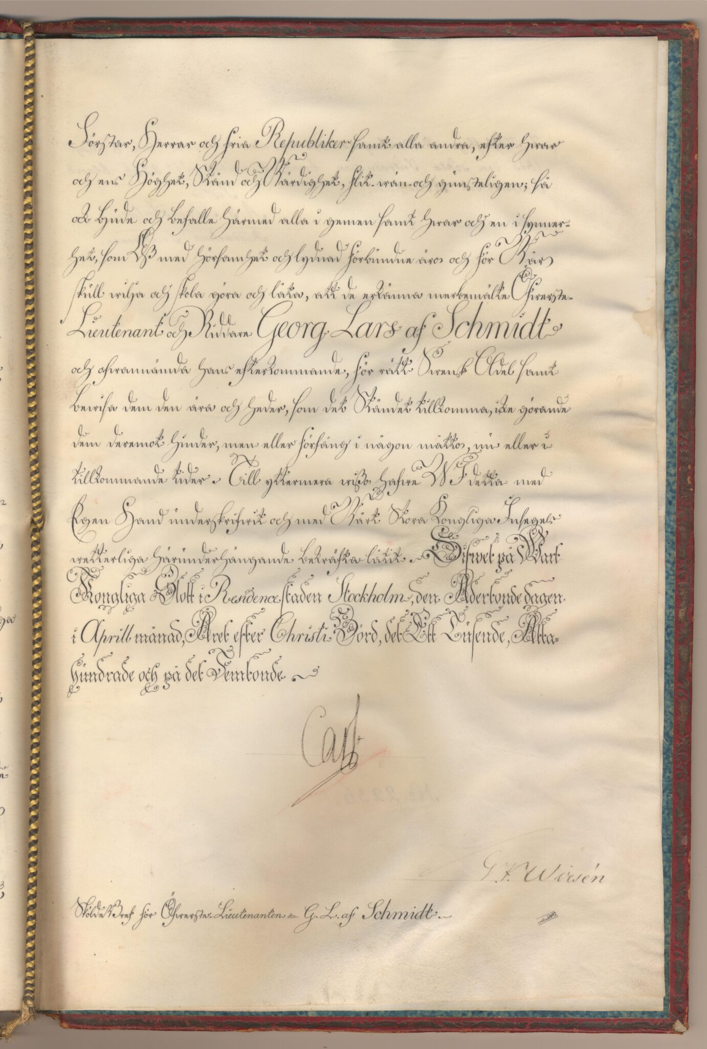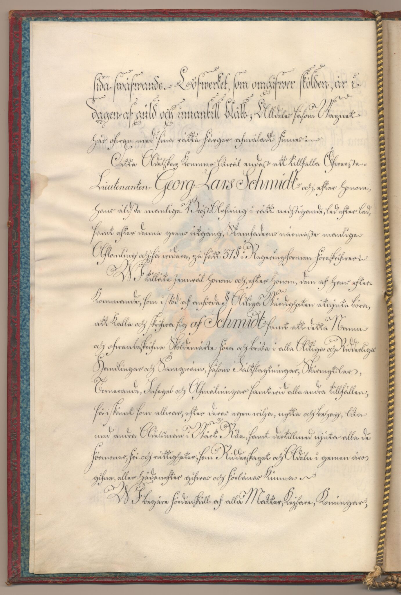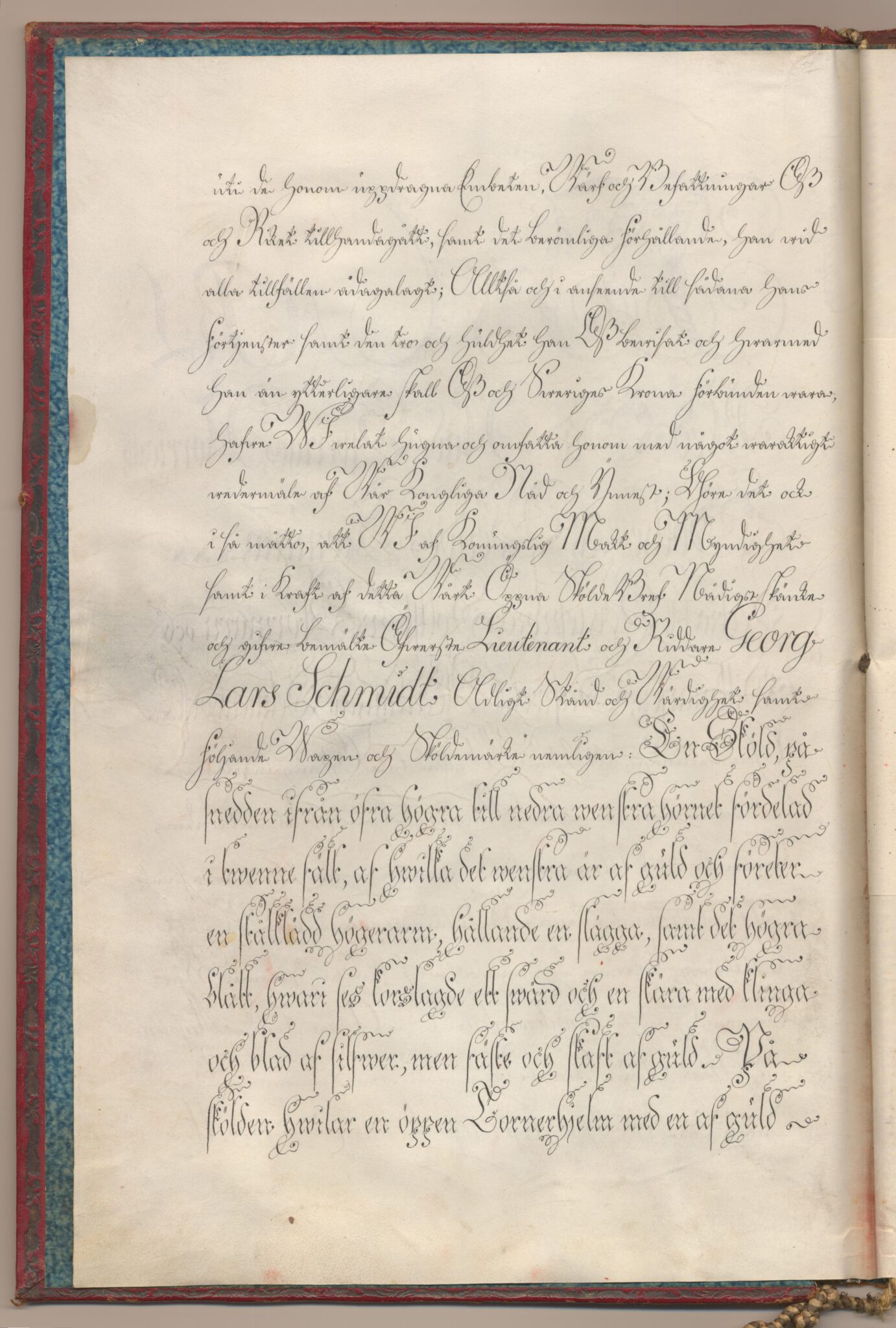 Sköldebrevet i original för utdöda adliga ätten af Schmidt, nr 2236.