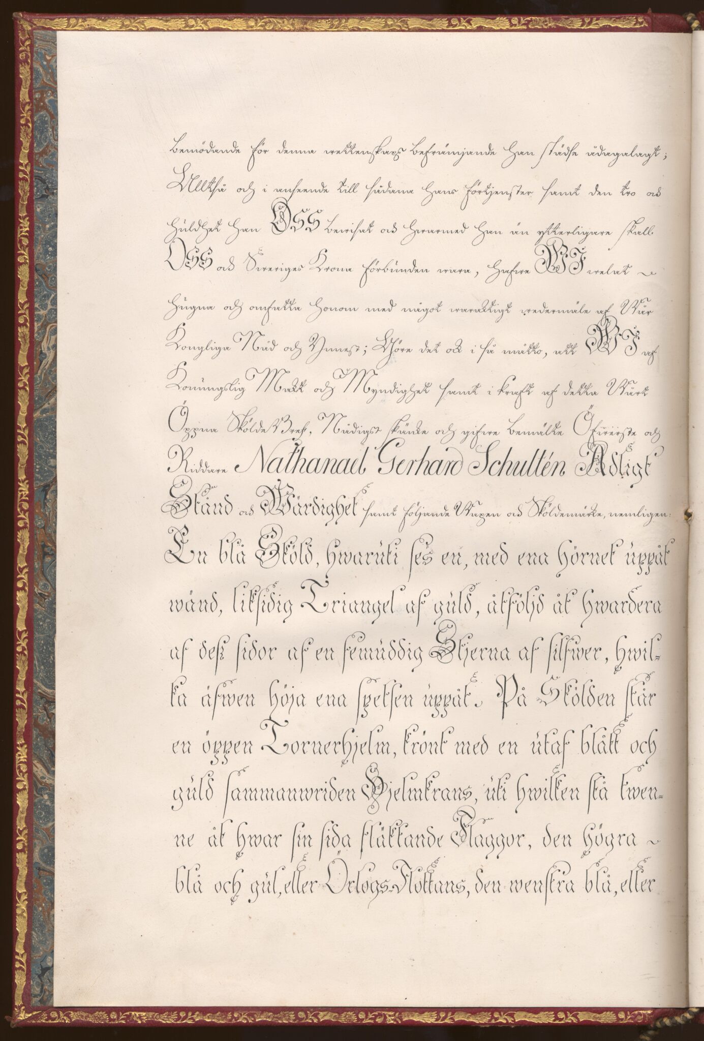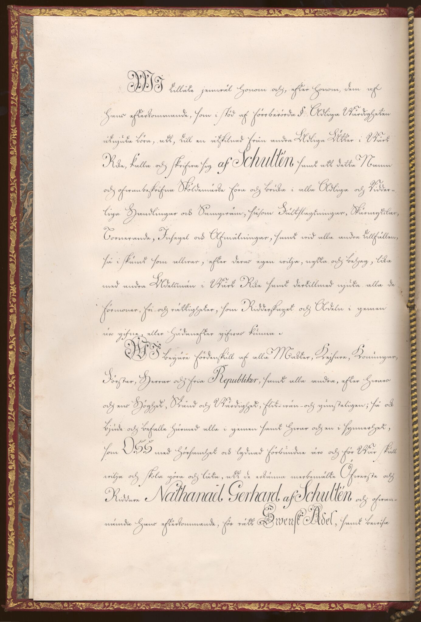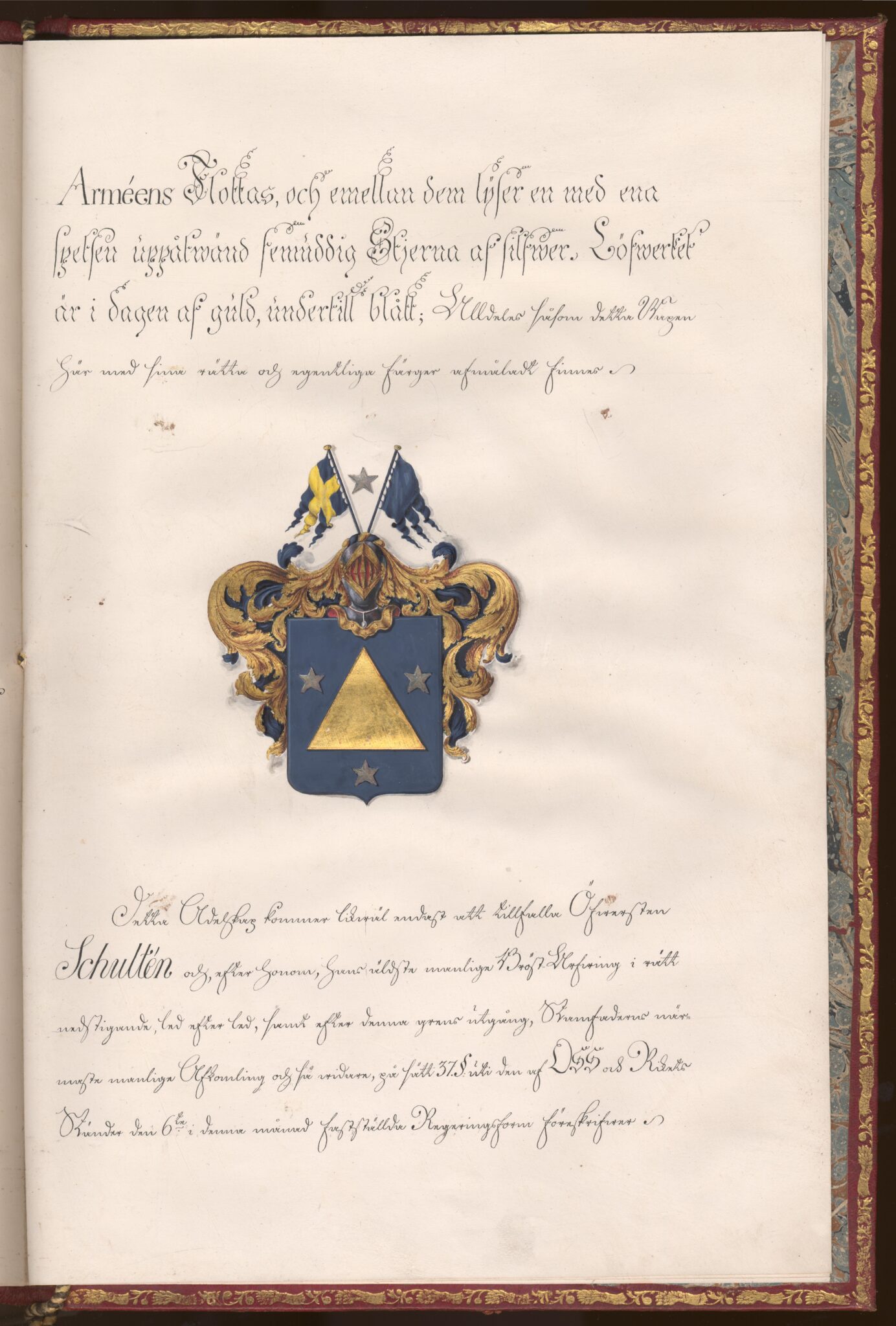 Sköldebrevet i original för adliga ätten af Schultén, nr 2206.