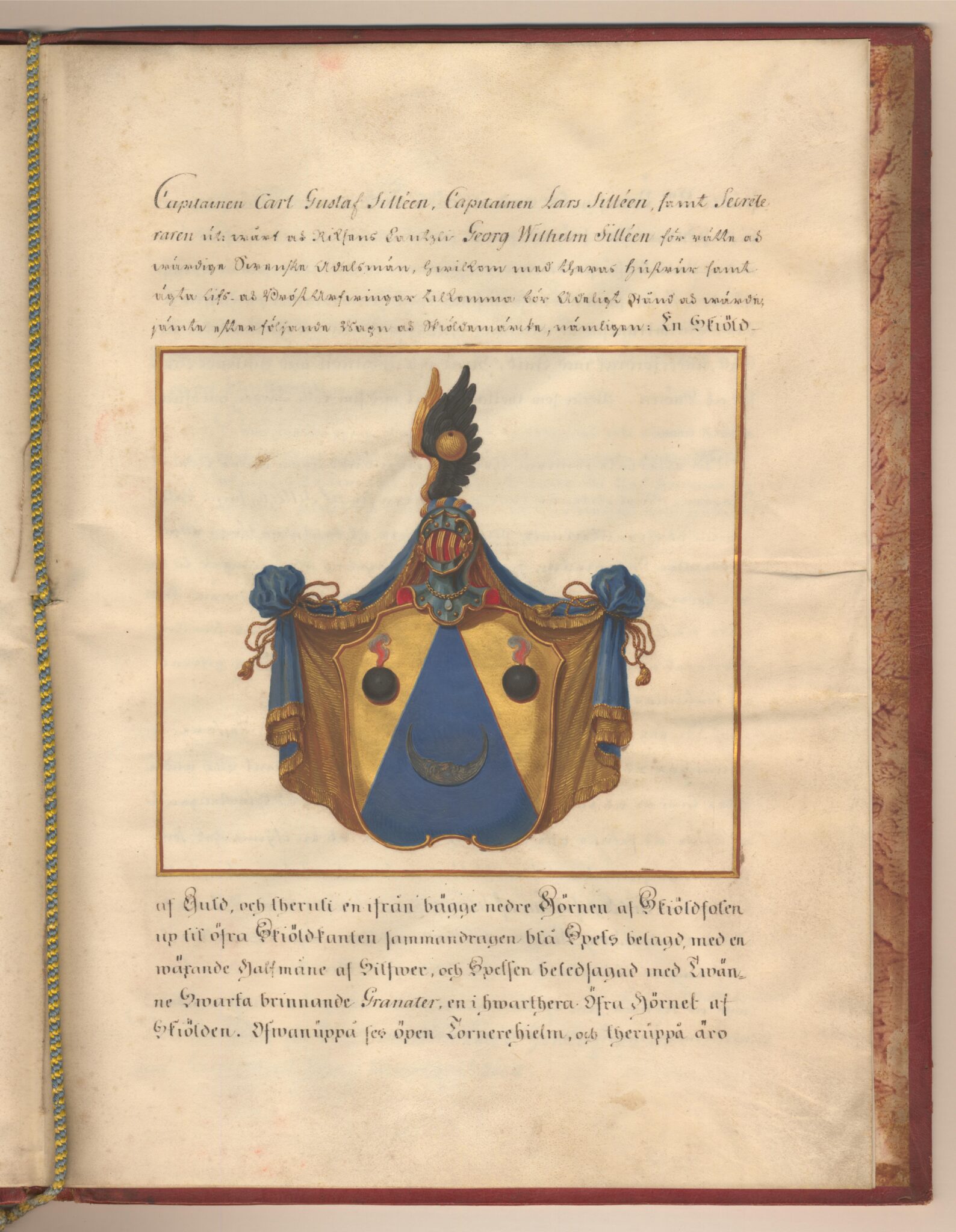 Sköldebrevet i original för adliga ätten af Sillén, nr 2001.