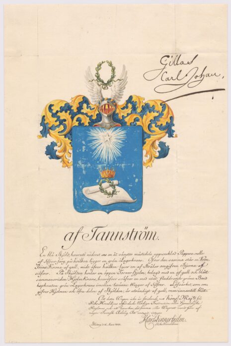 Approberad vapenritning för utdöda adliga ätten af Tannström, nr 2279.