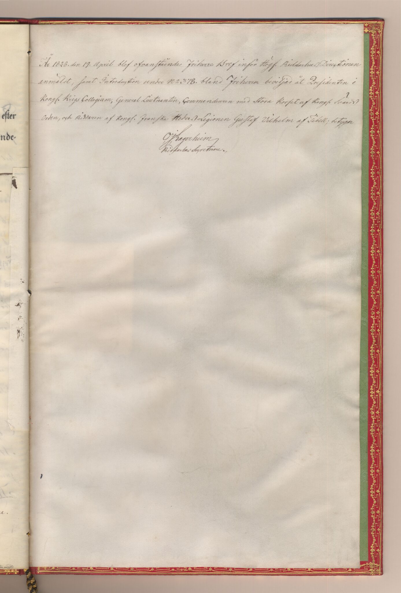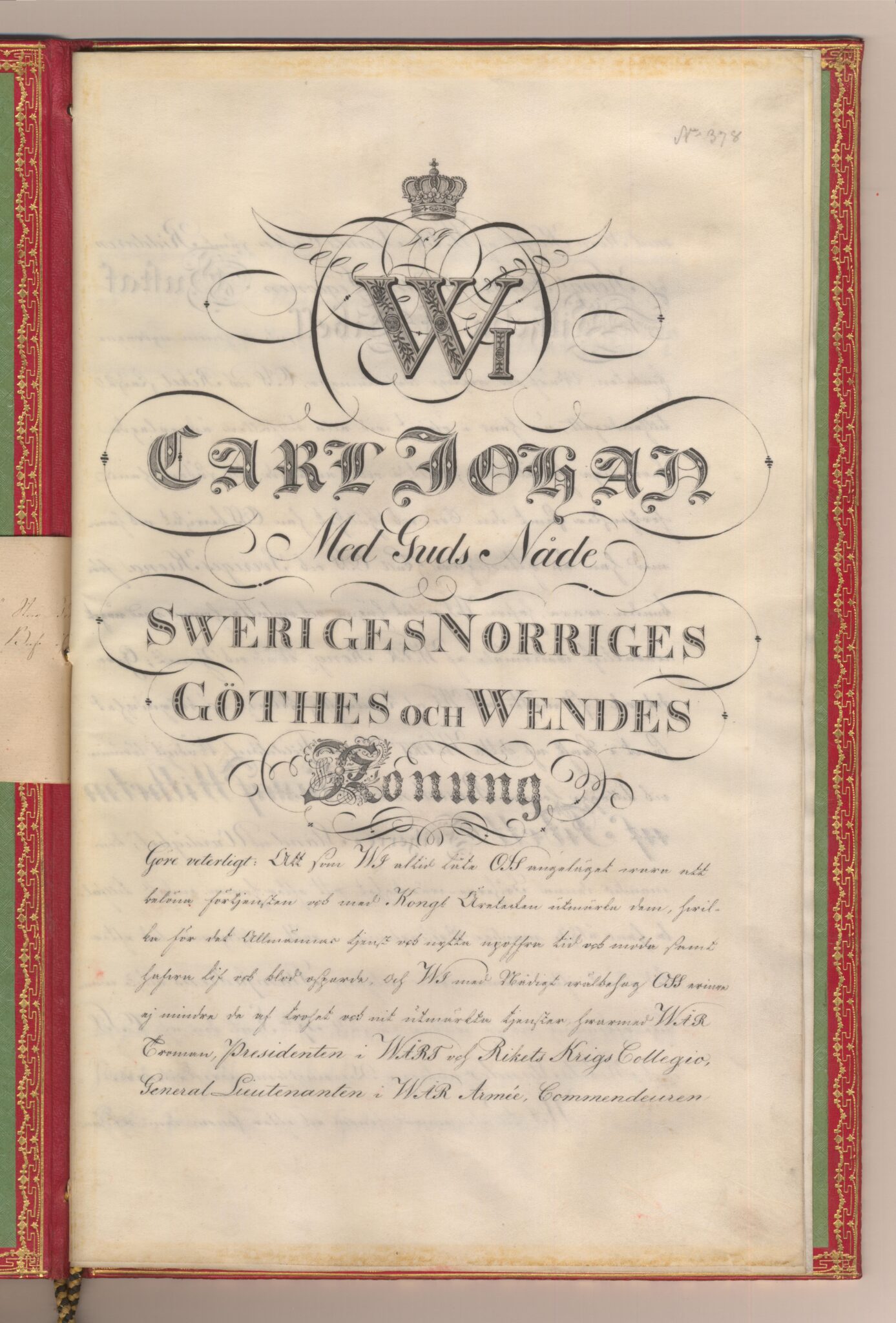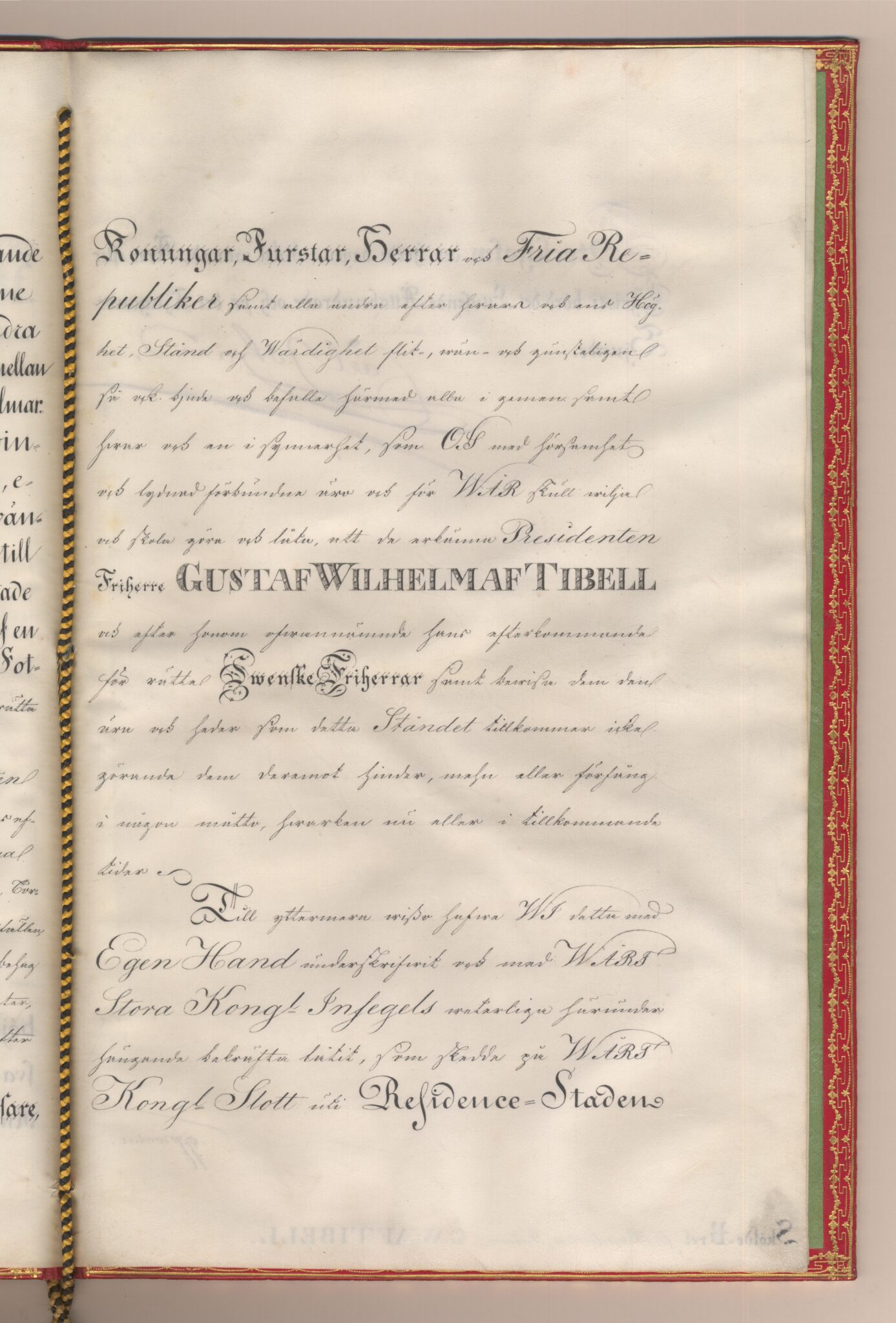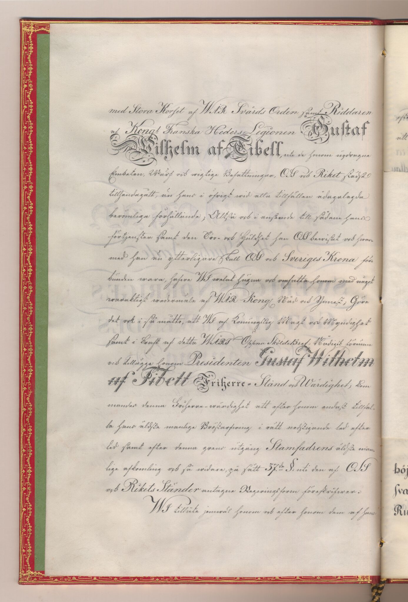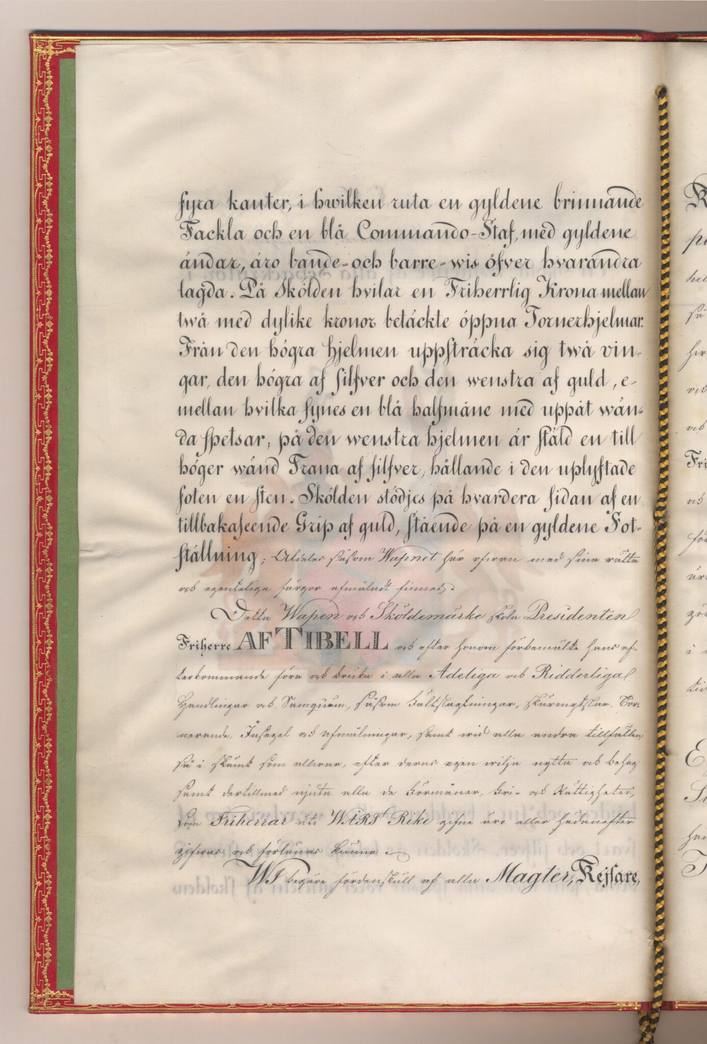 Friherrebrevet i original för utdöda friherrliga ätten af Tibell, nr 378.