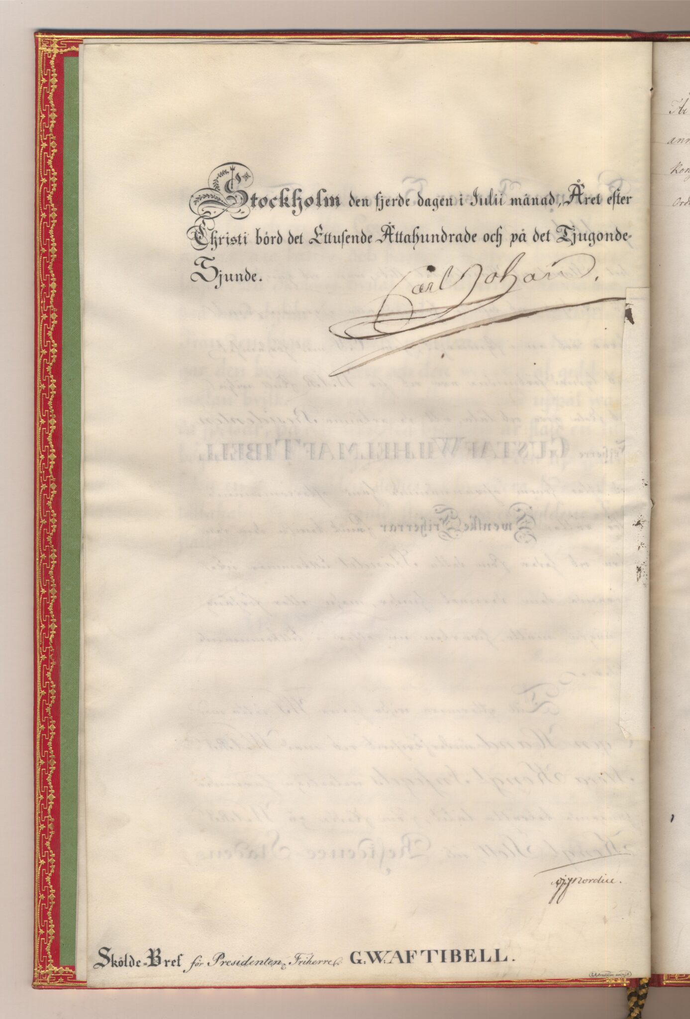 Utnämnd och utfärdat: Karl XIV Johan, Stockholms slott, 1827-07-04.