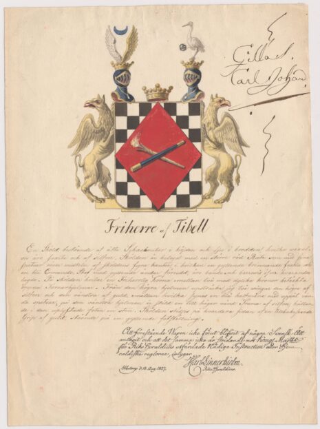 Approberad vapenritning för utdöda friherrliga ätten af Tibell, nr 378.