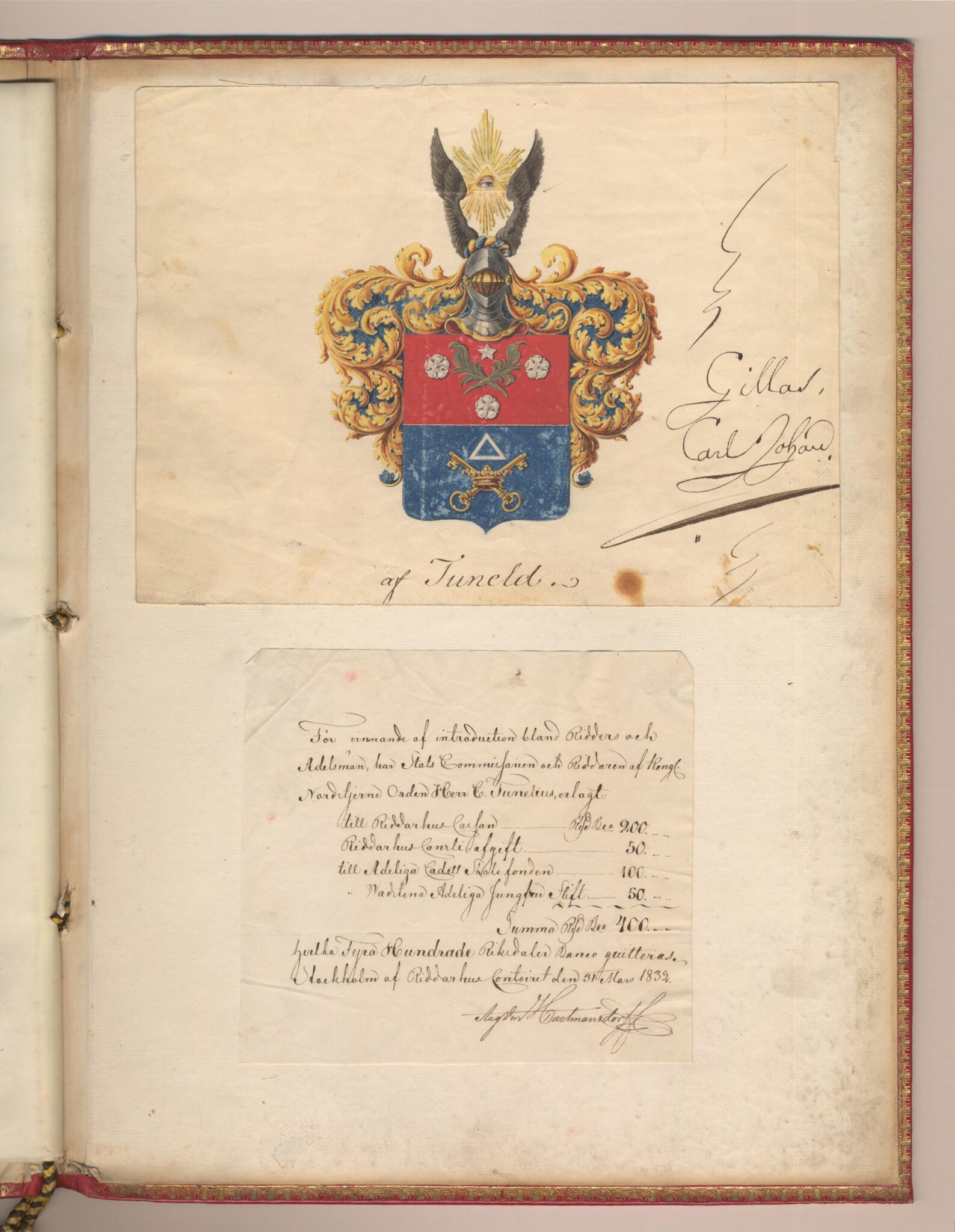 Sköldebrevet i original för utdöda adliga ätten af Tuneld, nr 2307.