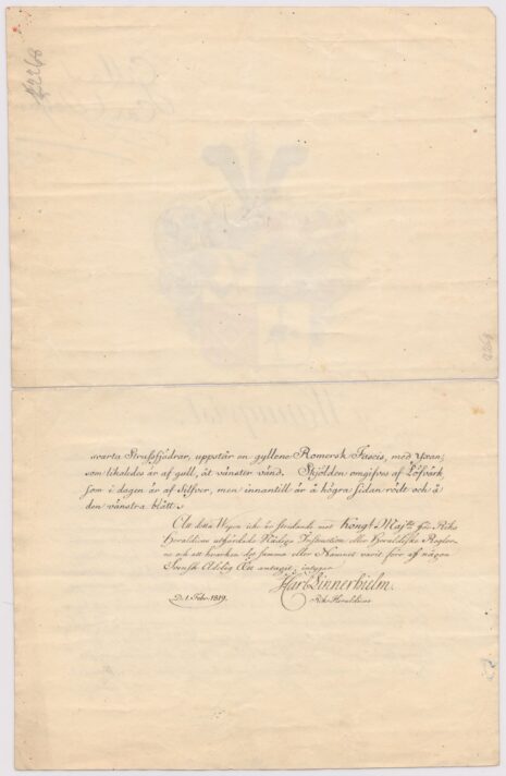 Utförd: Riksheraldiker Jonas Carl Linnerhielm, 1819-02-01.