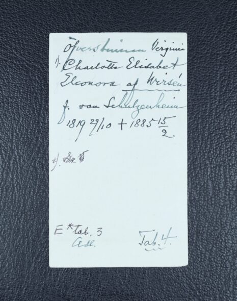 Wirsén, af, Virginia Charlotta Elisabet ELEONORA, född von Schulzenheim, nr 2004. Född 1819-10-29. Död 1885-02-15.