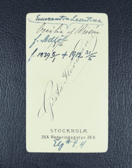 Wirsén, af, CECILIA Emerentia Leontina, född Adlöf. Född 1839-01-08. Död 1912-05-31.