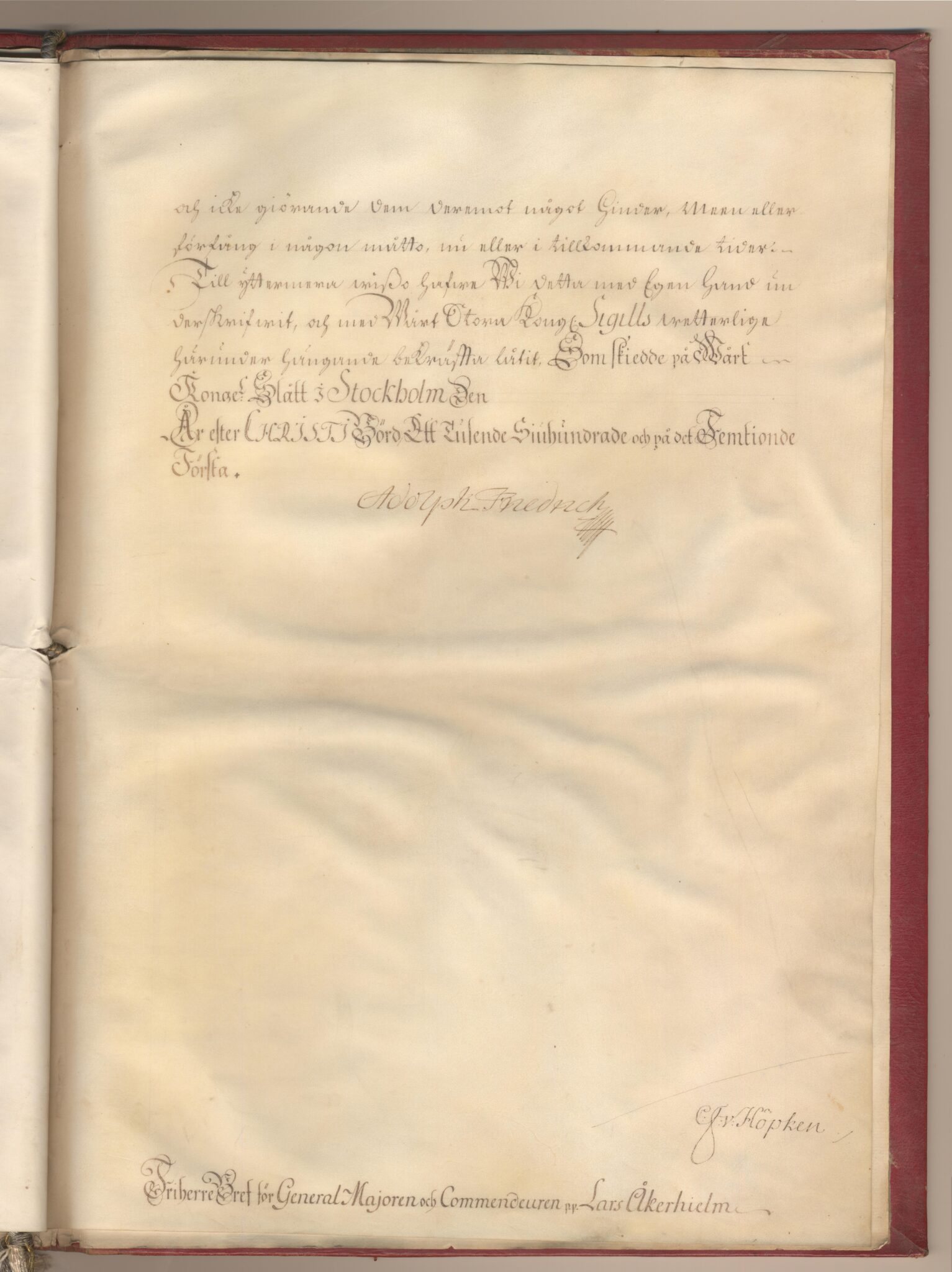 Utnämnd och utfärdat: Adolf Fredrik, Stockholms slott, 1751.