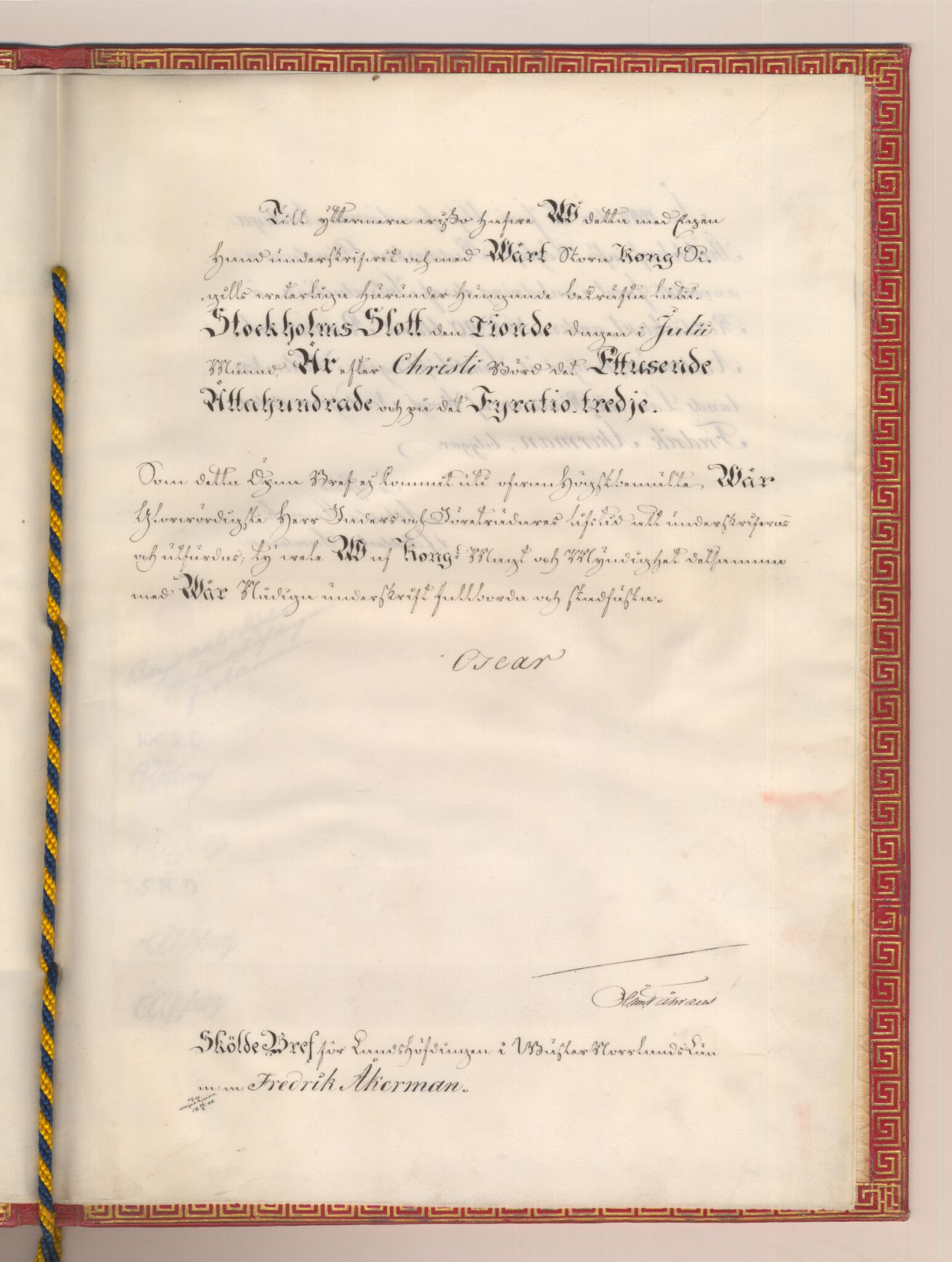 Utfärdat: Oscar I, plats och datum ej angivet.