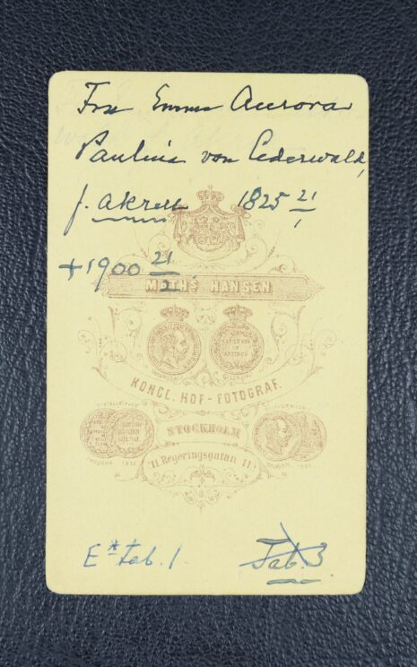 Akrell, EMMA Aurora Paulina, gift von Cederwald (finländska adliga ätten nr 175). Född 1825-01-21. Död 1900-02-21.