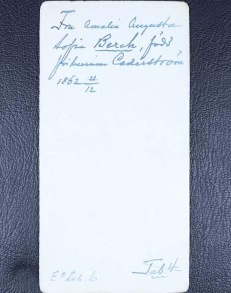 Berch, AMELIE Augusta Sofia, född friherrinna Cederström, nr 211. Född 1862-12-21. Död 1947-04-19.
