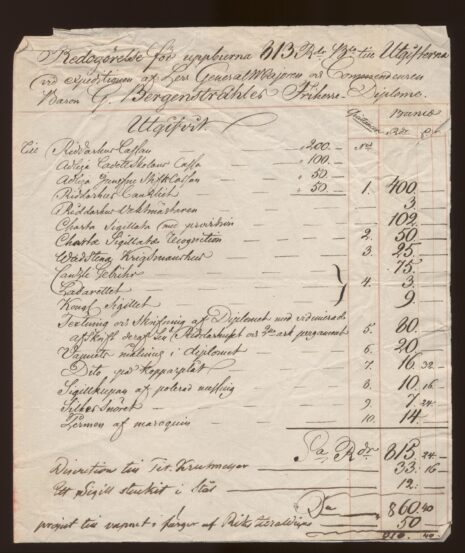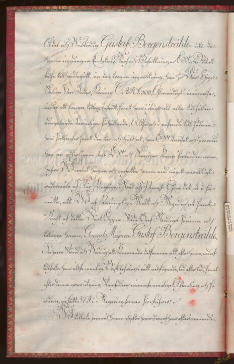 Friherrebrevet i original för utdöda friherrliga ätten Bergenstråhle, nr 375.