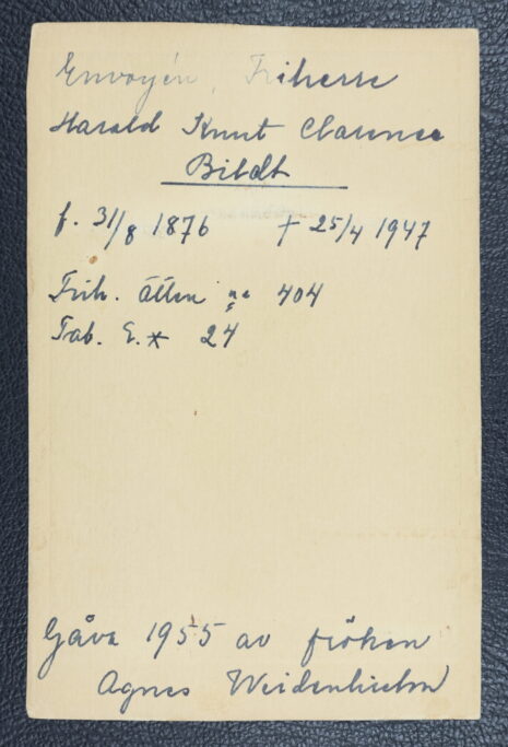 Bildt, HARALD Knut Clarence. Född 1876-08-31. Död 1947-04-25.