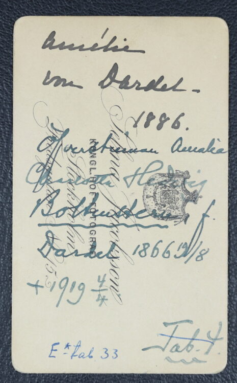 Boltenstern, AMELIE Charlotta Hedvig, född Dardel, nr 2217. Född 1866-08-19. Död 1919-04-04.