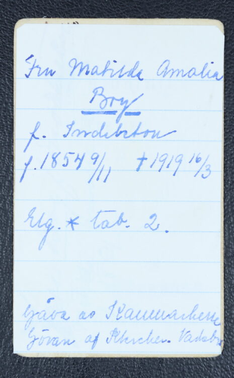 Boy, MATILDA Amalia, född Indebetou. Född 1854-11-09. Död 1919-03-16.