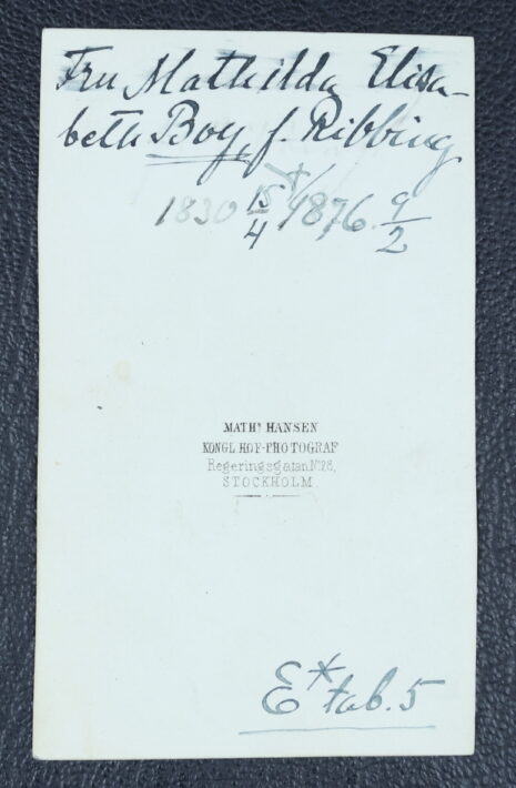 Boy, MATILDA Elisabet, född Ribbing, nr 15. Född 1830-04-15. Död 1876-02-09.