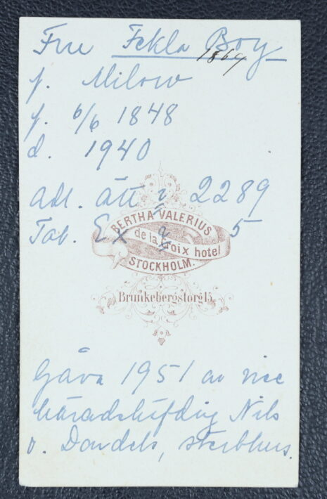 Boy, TEKLA, född Milow. Född 1848-06-06. Död 1940-07-04.