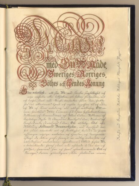 Friherrebrevet i original för utdöda friherrliga ätten Braunerhielm, nr 401.
