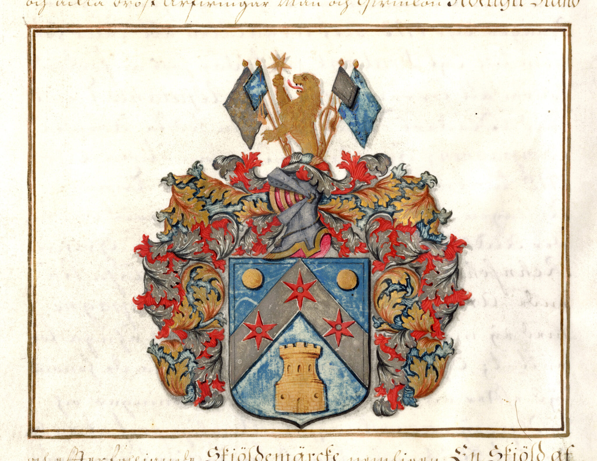 Sköldebrevet i original för utdöda adliga ätten Browald, nr 1764.