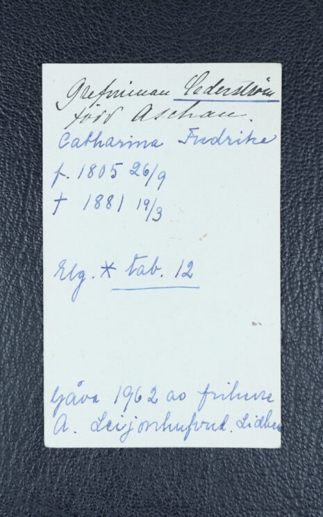 Cederström, Catharina (CARIN) Fredrika, född Aschan. Född 1805-09-26. Död 1881-03-19.