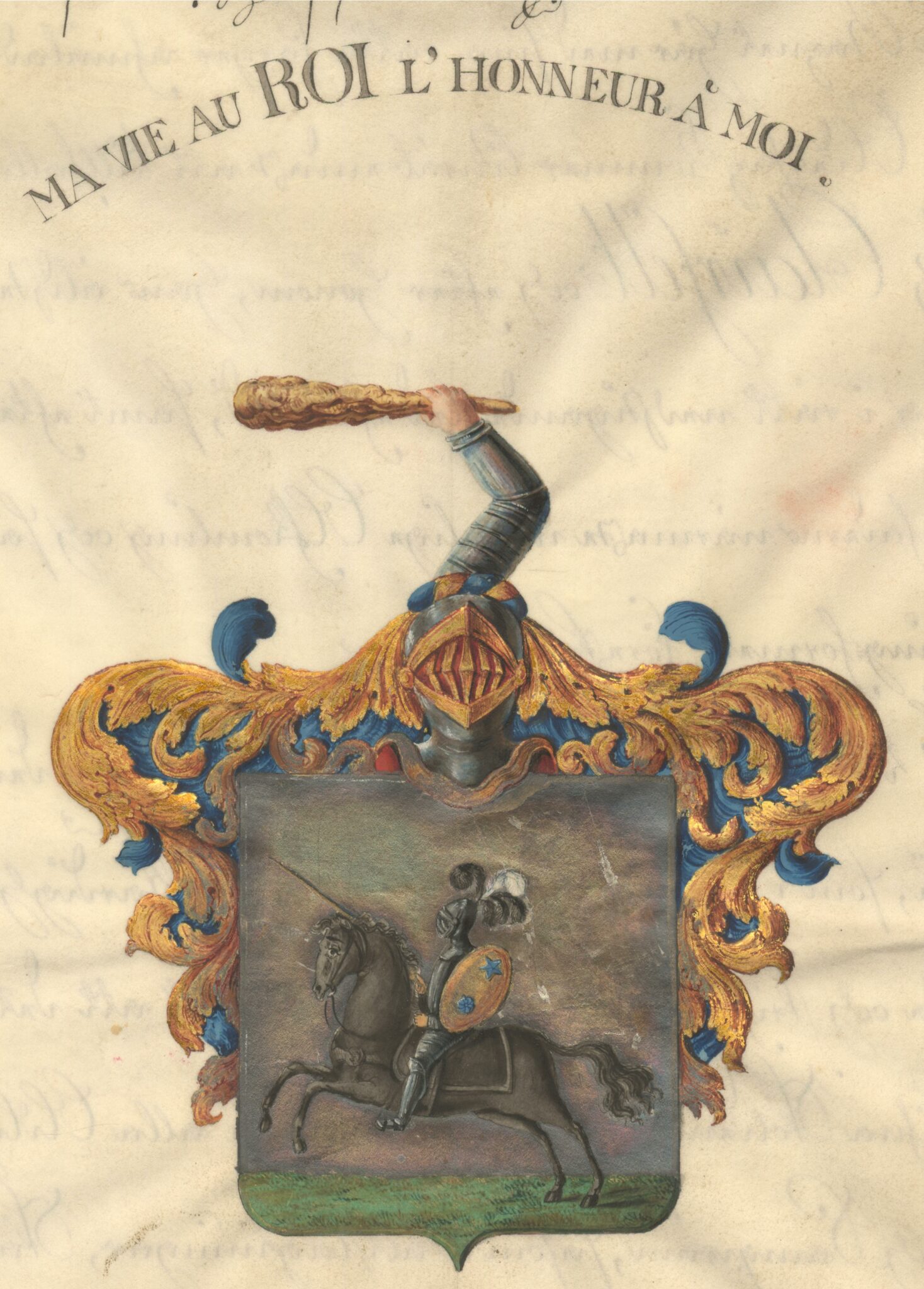 Sköldebrevet i original för utdöda adliga ätten Clairfelt, nr 2241.