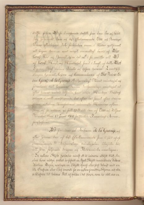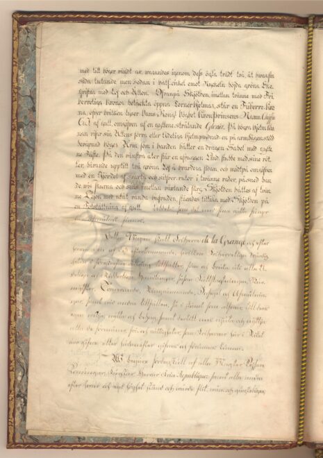 Friherrebrevet i original för utdöda friherrliga ätten de la Grange, nr 368.