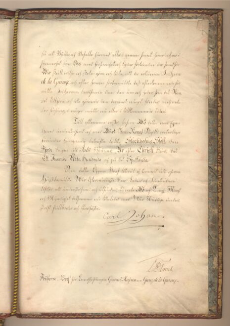 Utfärdat: Karl XIV Johan, plats och datum ej angivet.
