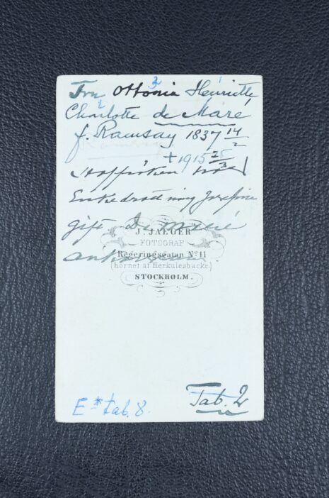 de Maré, Henrietta Charlotta OTTONIE, född Ramsay, nr 215. Född 1837-02-14. Död 1915-03-25.