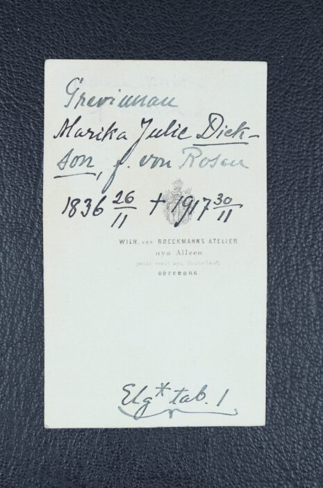 Dickson, MARIKA Julie, född grevinna von Rosen, nr 85. Född 1836-11-26. Död 1917-11-30.