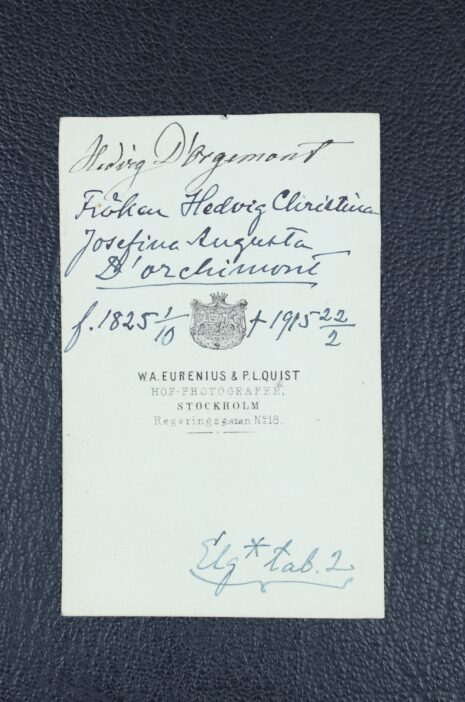 d’Orchimont, HEDVIG Christina Josefina Augusta. Född 1825-10-01. Död 1915-02-22.