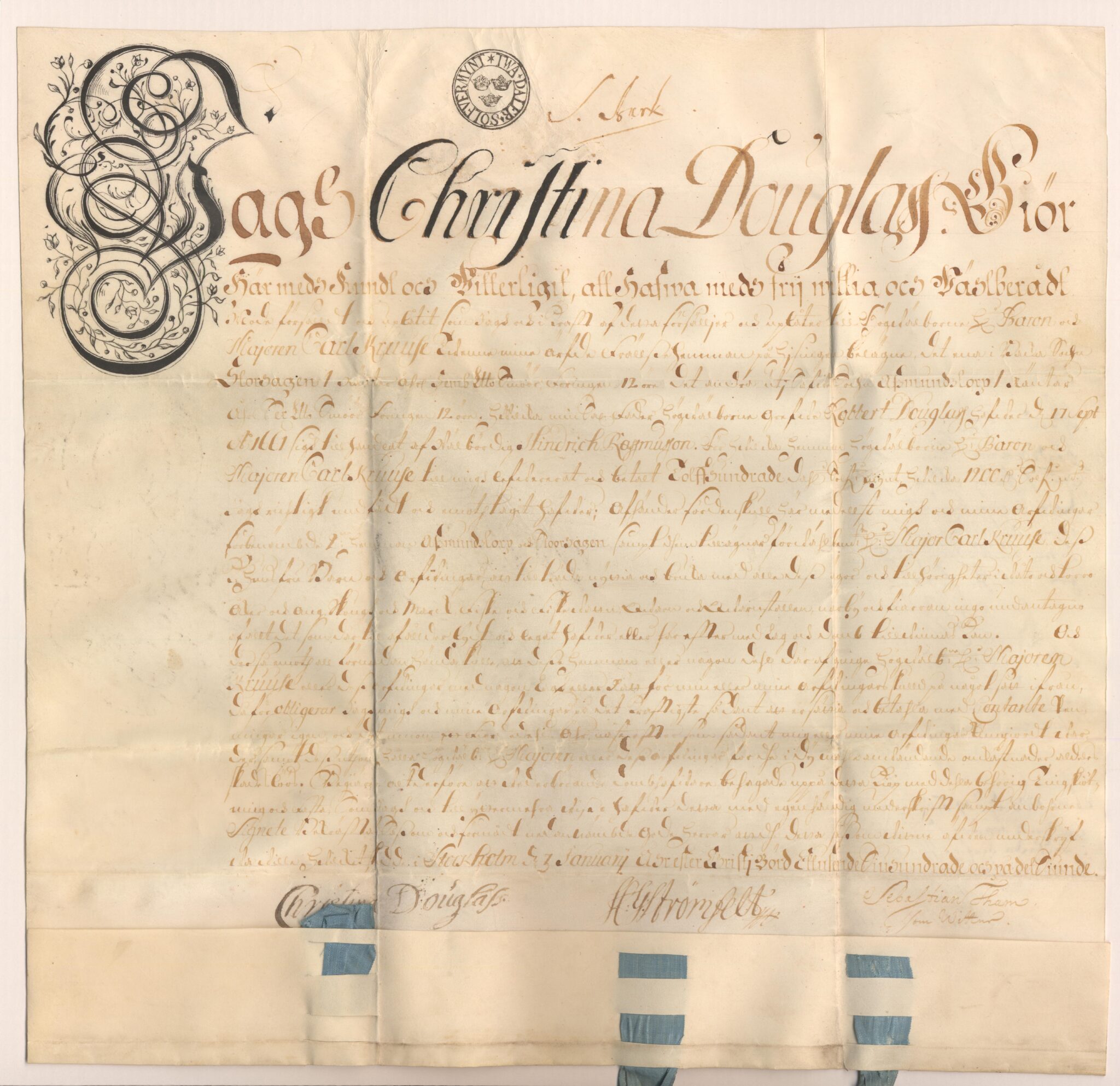 Utfärdat: Christina Douglas, Stockholm, 1707-01-03.