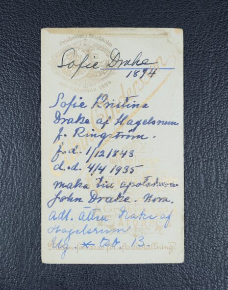 Drake af Hagelsrum, SOFIA Christina, född Ringström. Född 1843-12-01. Död 1935-04-04.