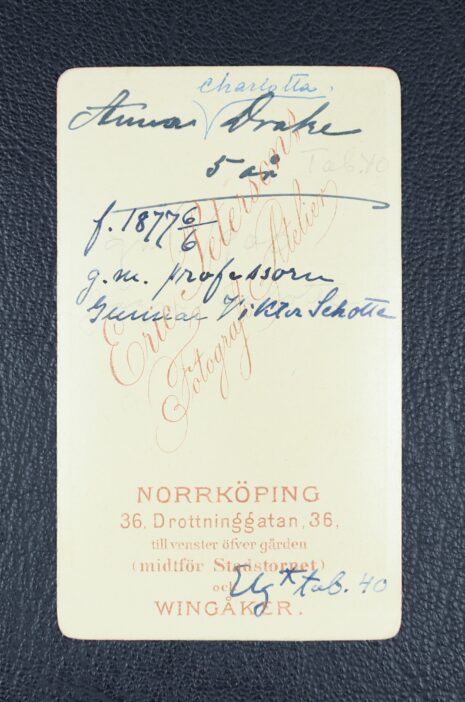 Drake af Hagelsrum, ANNA Charlotta, gift Schotte. Född 1877-06-06. Död 1965-11-08.