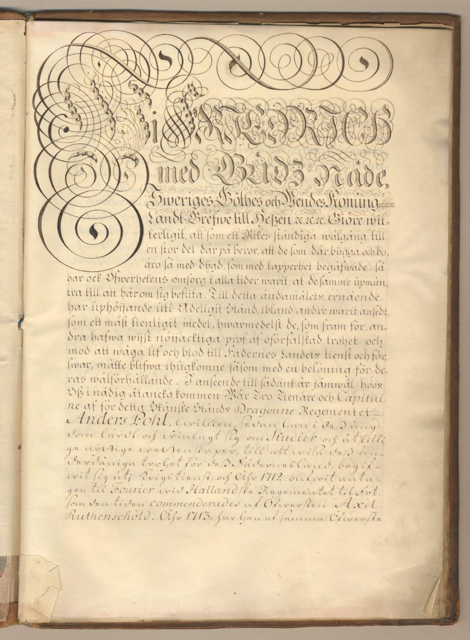 Sköldebrevet i original för utdöda adliga ätten Ehrenpohl, nr 1871.