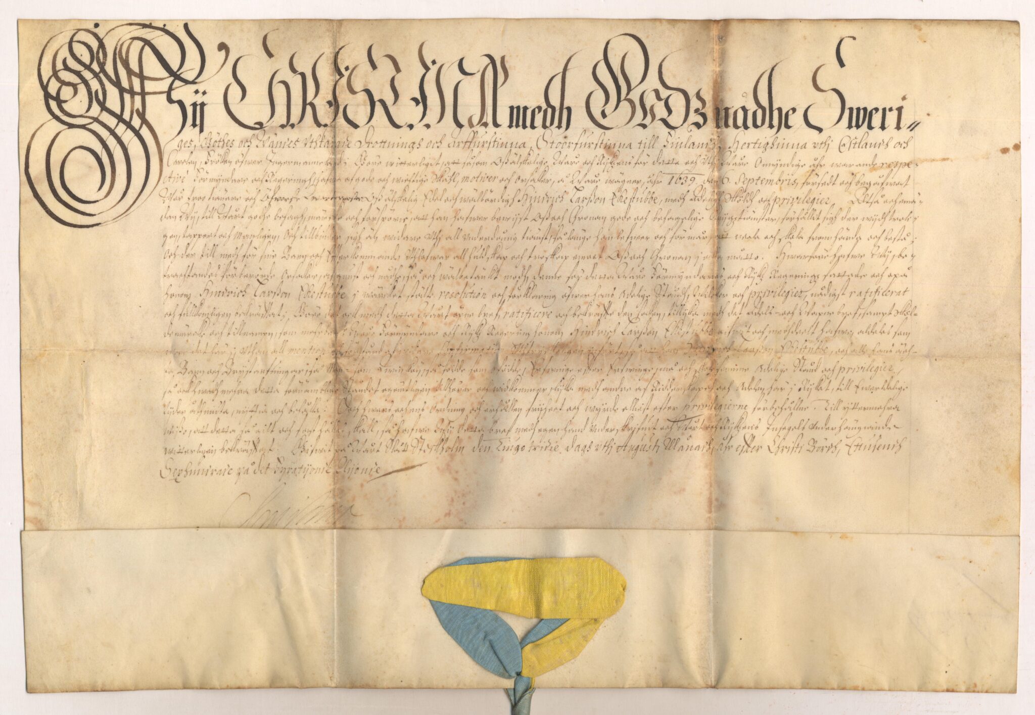 Konfirmationsbrev på adelskap utfärdat 1637-12-19 för utdöda adliga ätten Ekestubbe, nr 285.