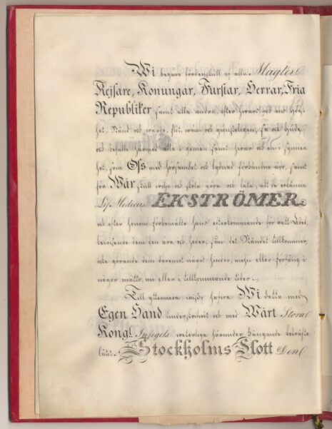 Sköldebrevet i original för adliga ätten Ekströmer, nr 2313.