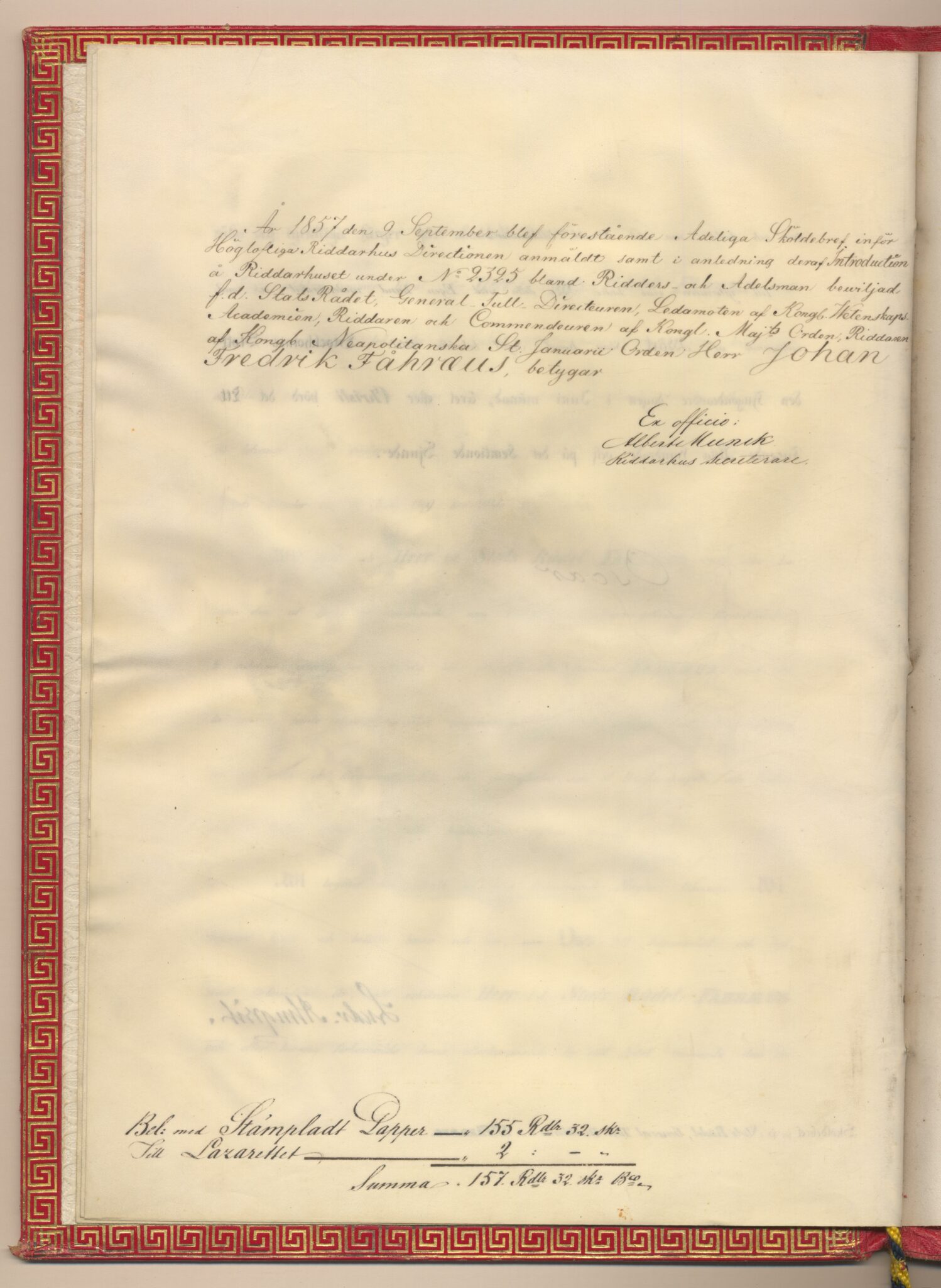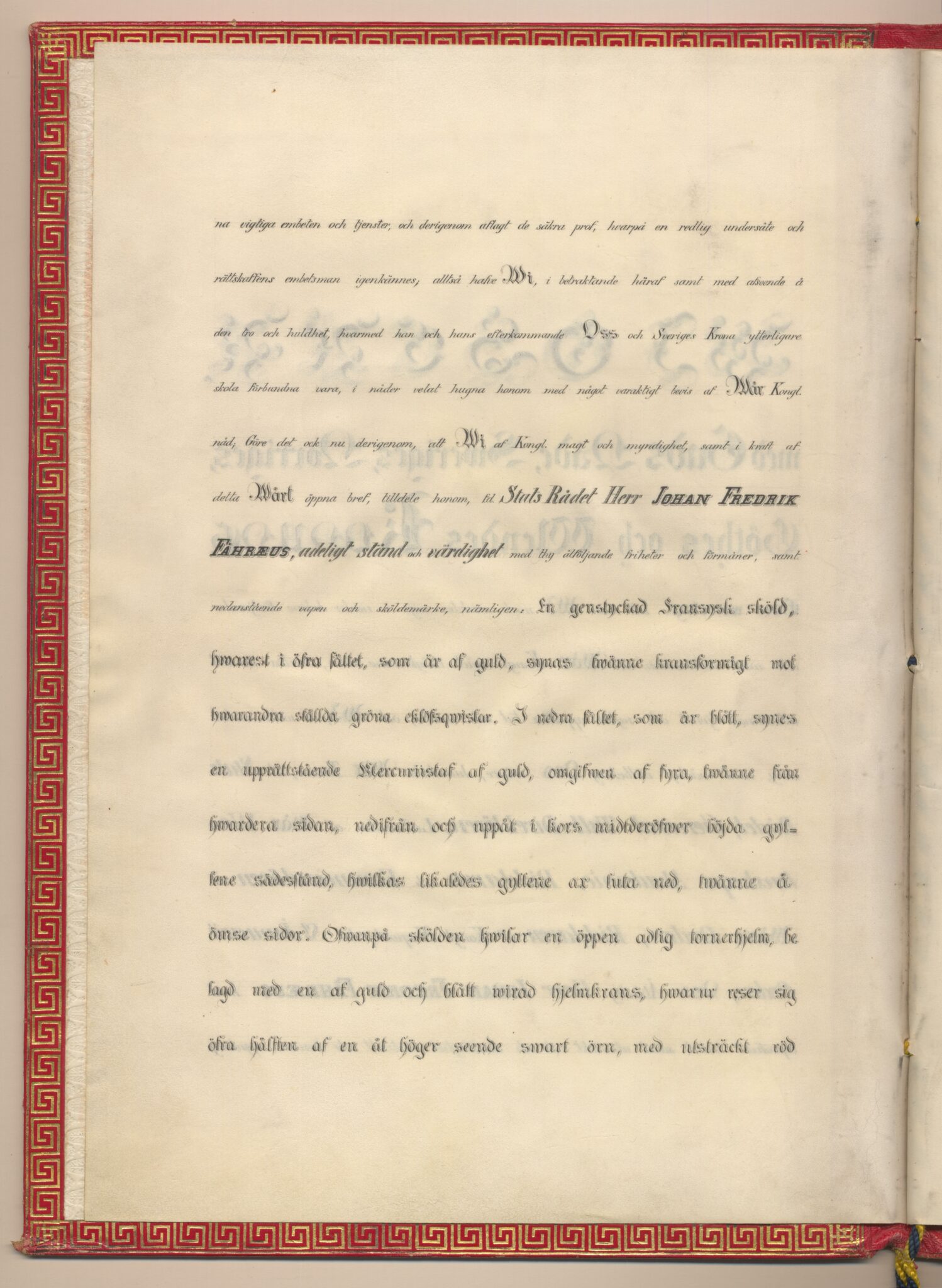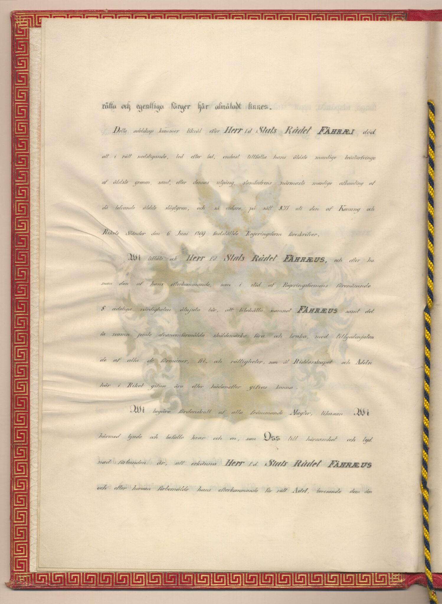Sköldebrevet i original för adliga ätten Fåhræus, nr 2325.