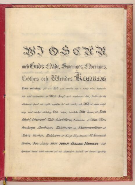 Sköldebrevet i original för adliga ätten Fåhræus, nr 2325.