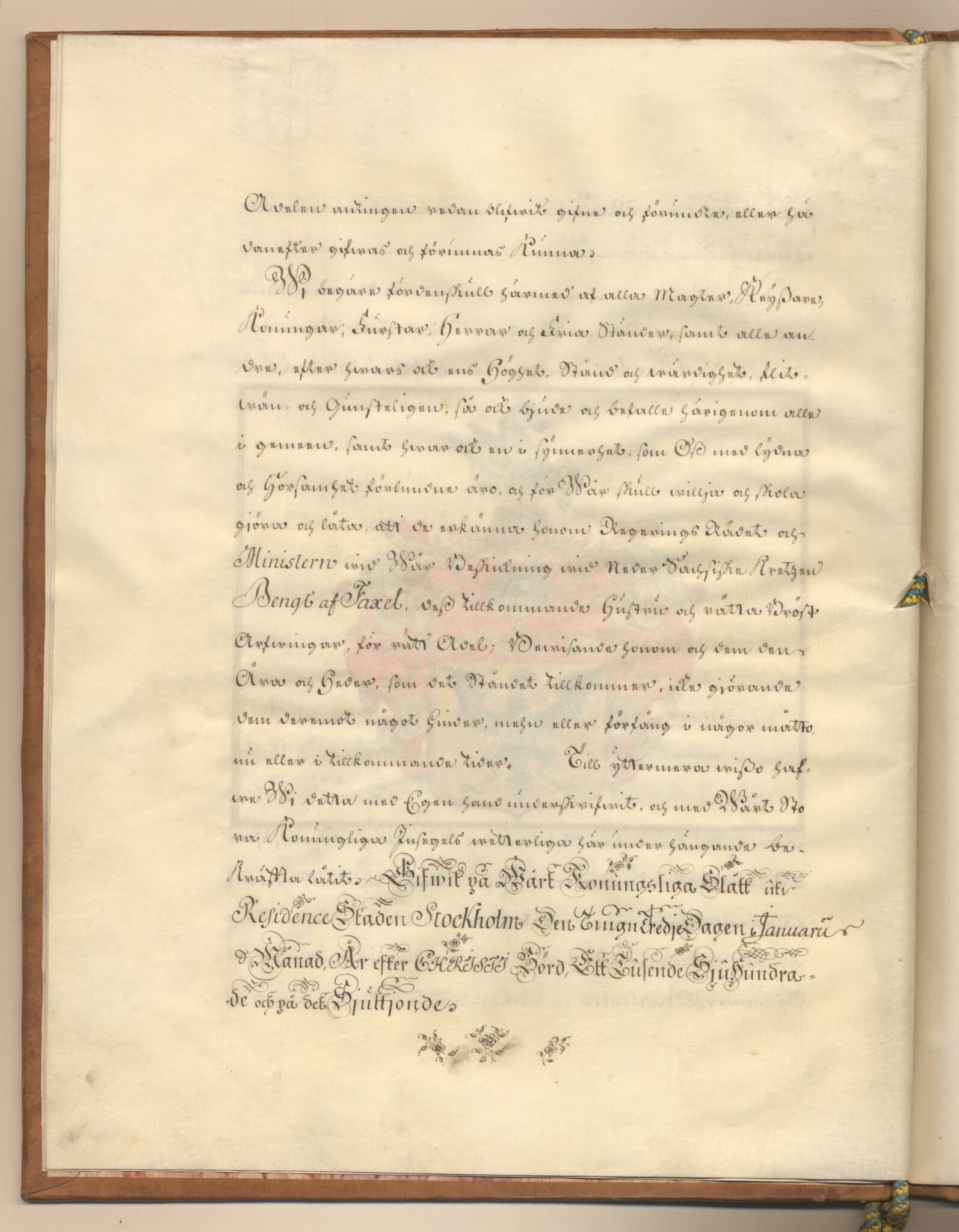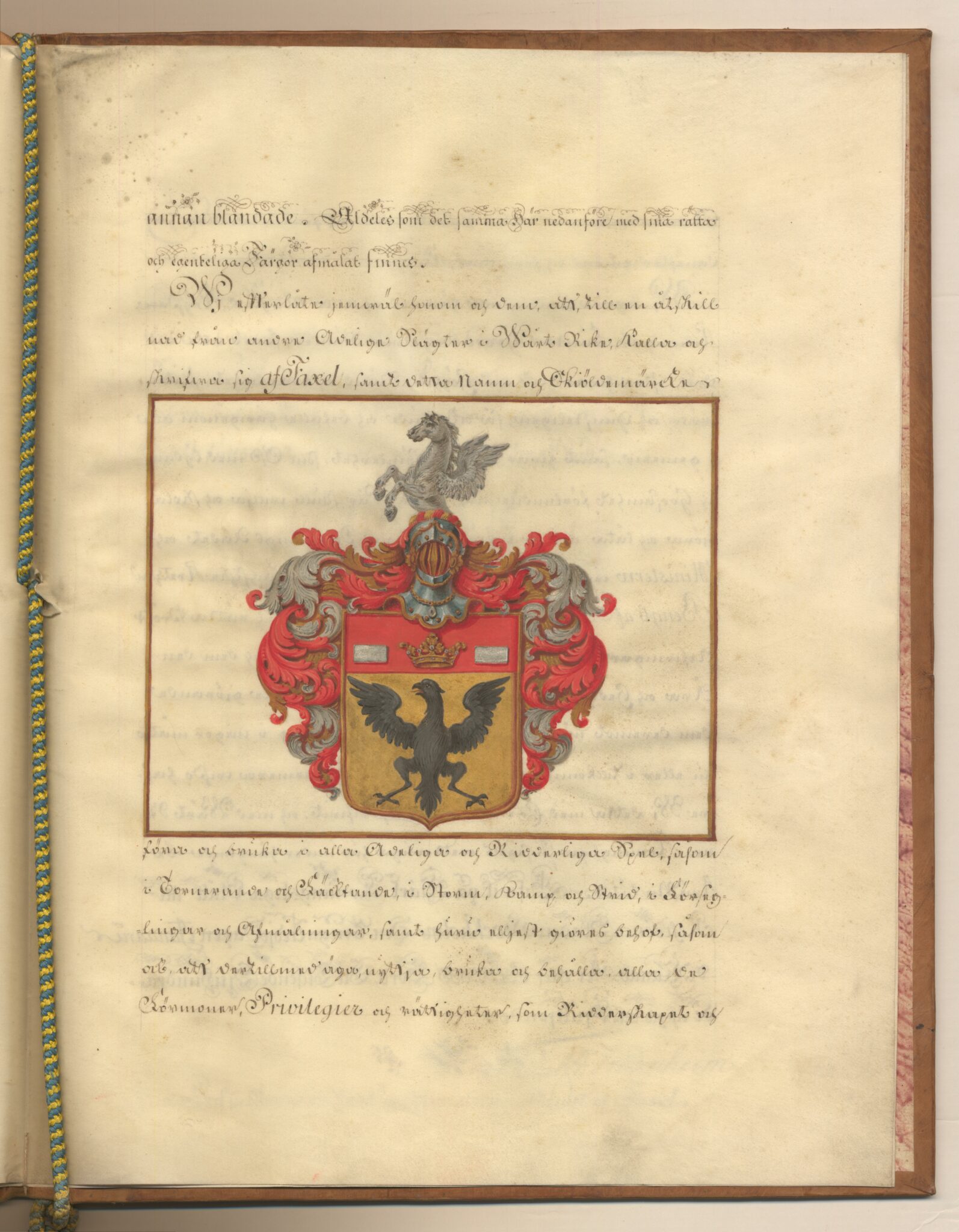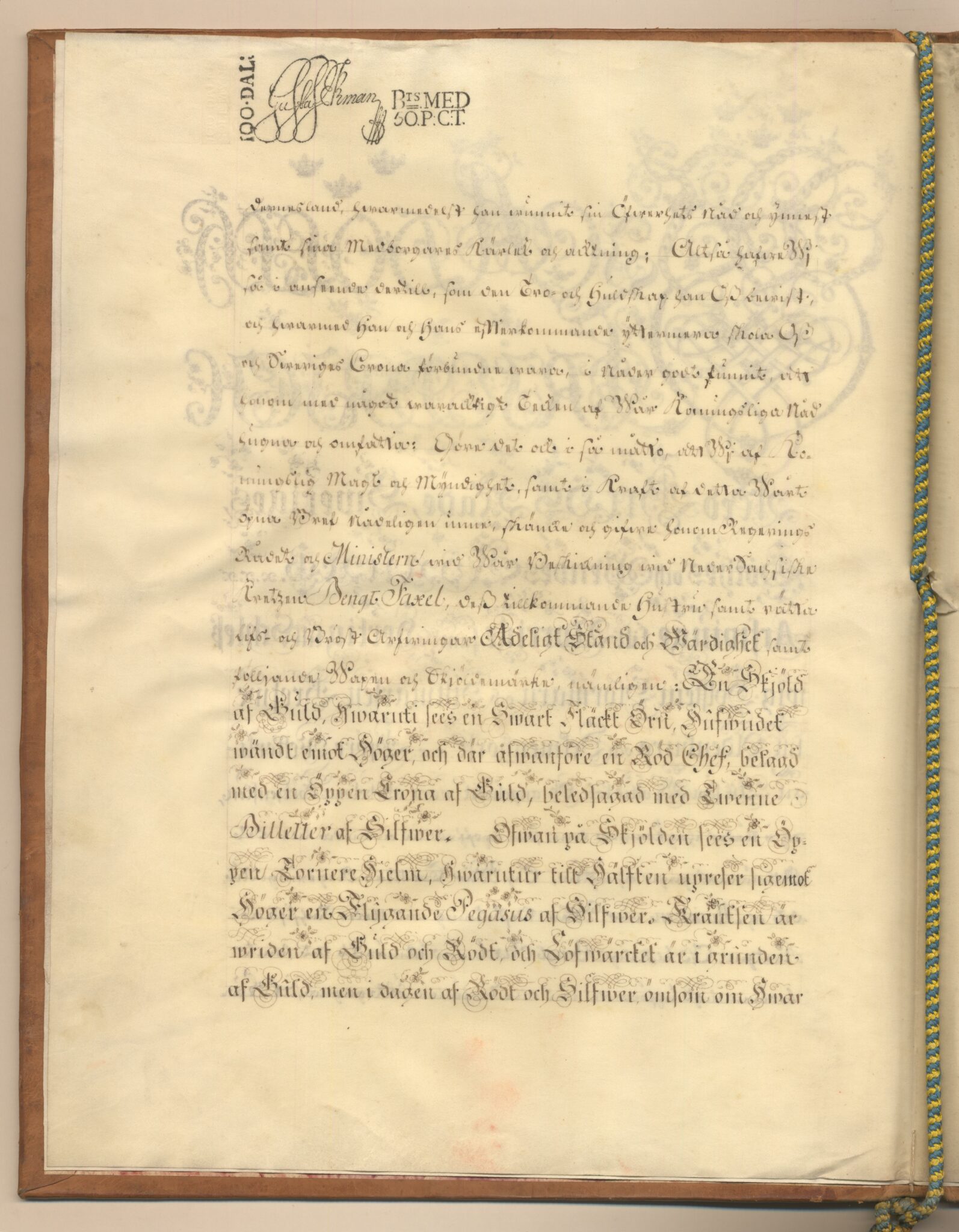 Sköldebrevet i original för utdöda adliga ätten Faxell, nr 2106.