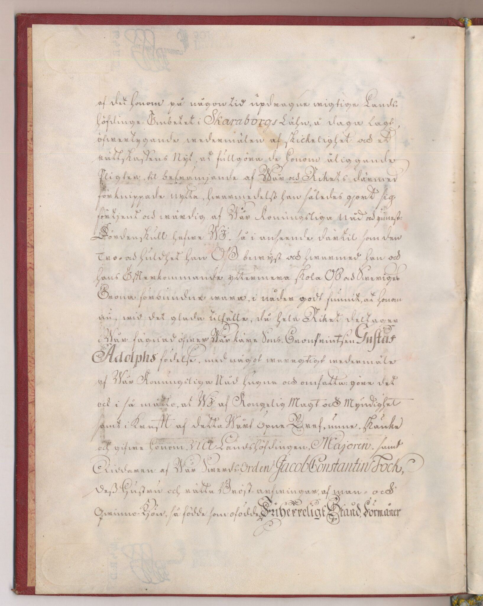 Friherrebrevet i original för friherrliga ätten Fock, nr 304.