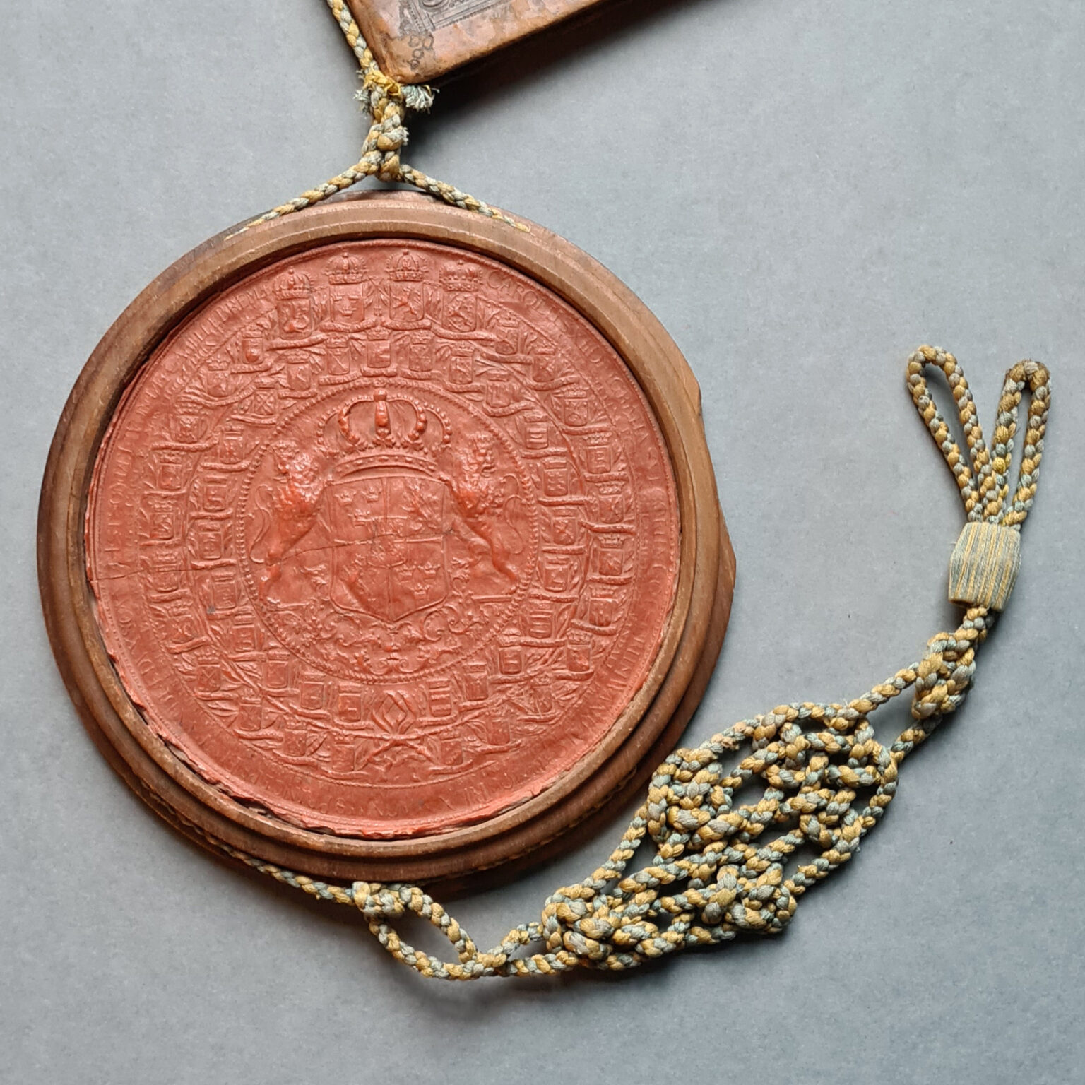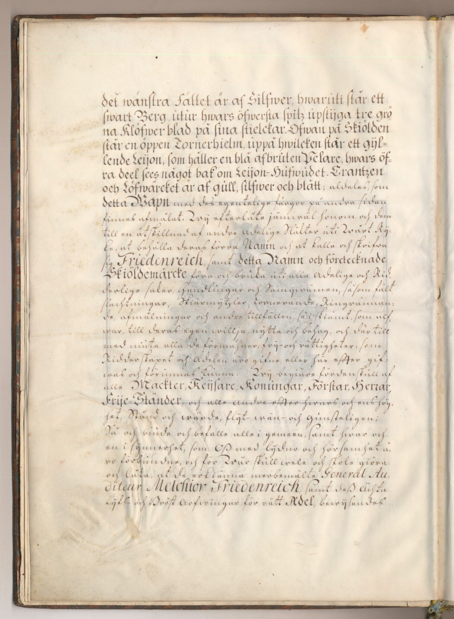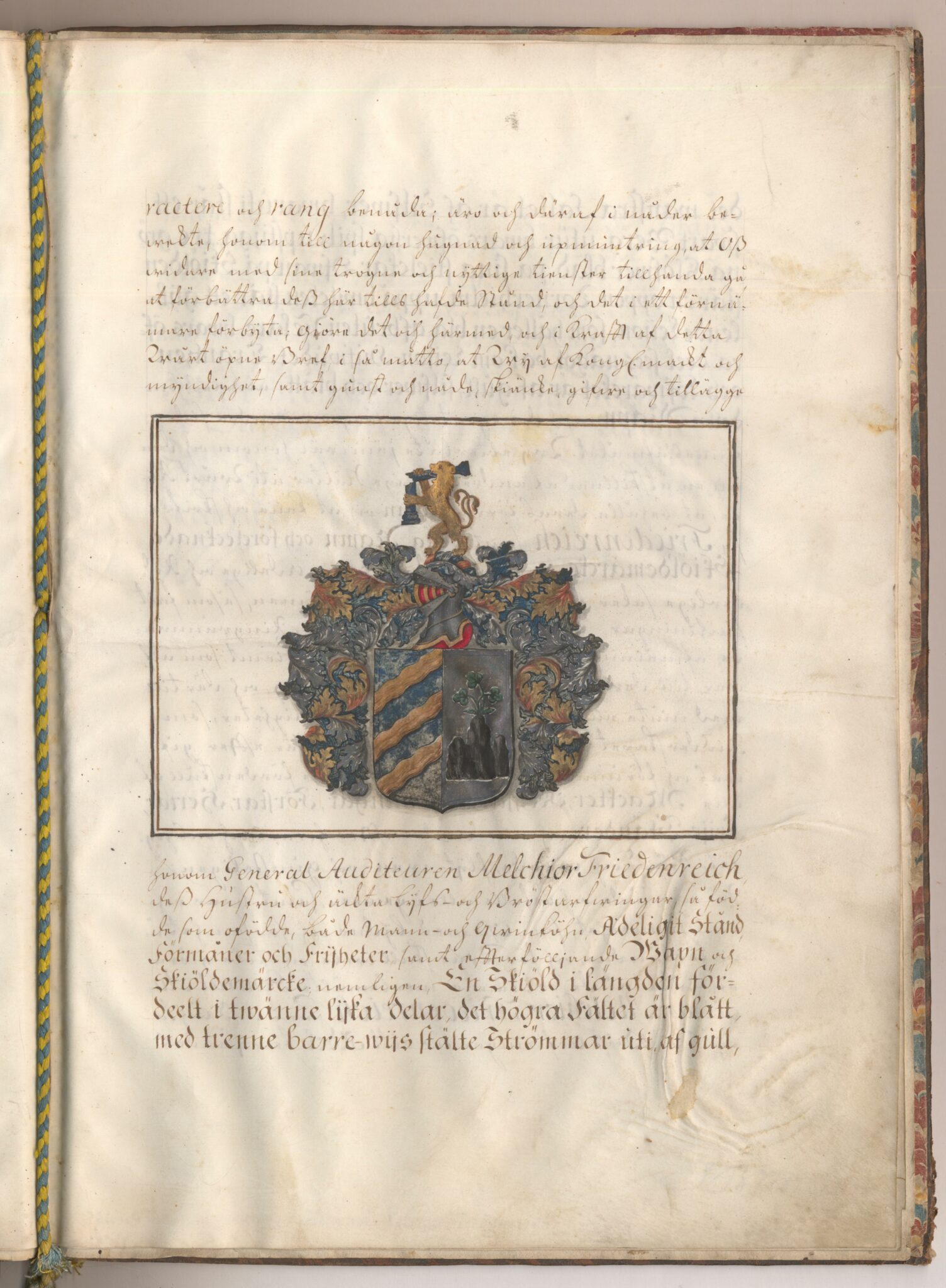 Sköldebrevet i original för utdöda adliga ätten Friedenreich, nr 1597.